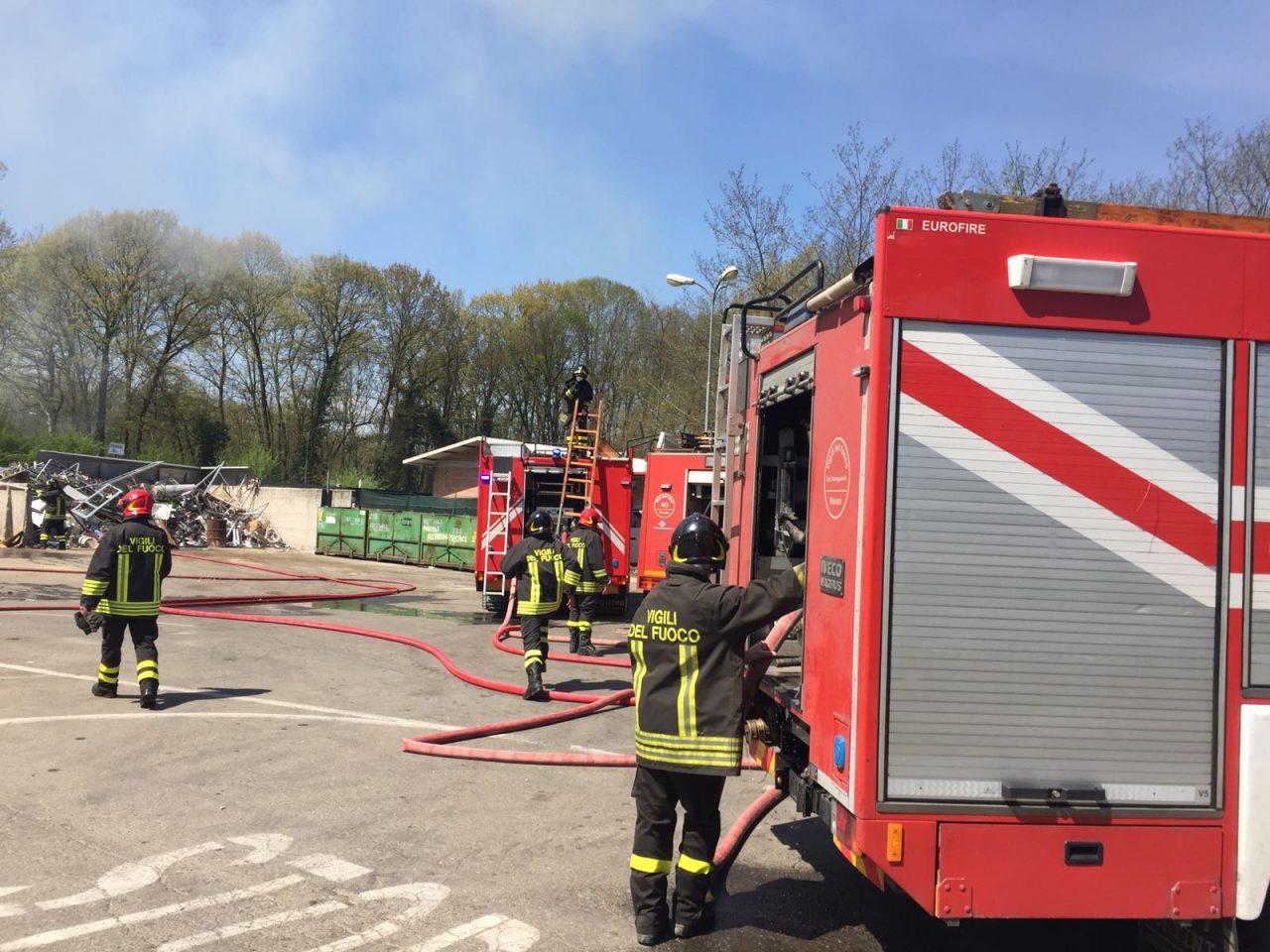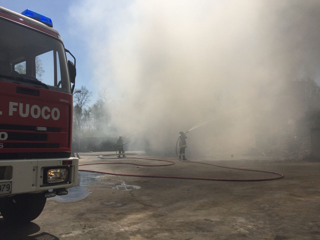 Le fiamme hanno interessato anche un’area di stoccaggio potature