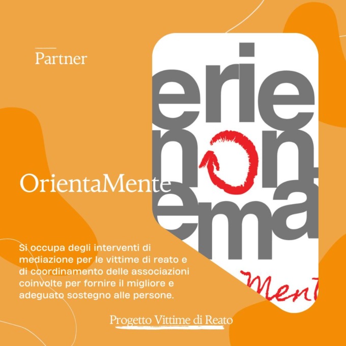 L’Associazione OrientaMente, con i suoi psicologi, coordina e gestisce direttamente lo sportello. Altri due partner collaborano alla costruzione della rete: Liberazione Speranza scs e EssereUmani onlus. Lo sportello ha come obiettivo di promuovere interventi di mediazione per le vittime di reato per fornire loro il migliore e adeguato sostegno rispetto ai problemi che stanno affrontando.
