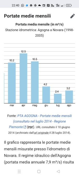 L’Osservatorio ricorda che, dai dati della Regione Piemonte, la portata media dell’Agogna a Novara nel luglio 2014 era di 2,4 metri cubi al secondo, comprensiva dell’apporto della roggia Mora a Nibbia. Senza quest’ultima, la portata sarebbe stata pari a zero. Pur consapevoli che negli ultimi anni la situazione sia peggiorata, gli ambientalisti scelgono di mantenere questo dato «per generosità».