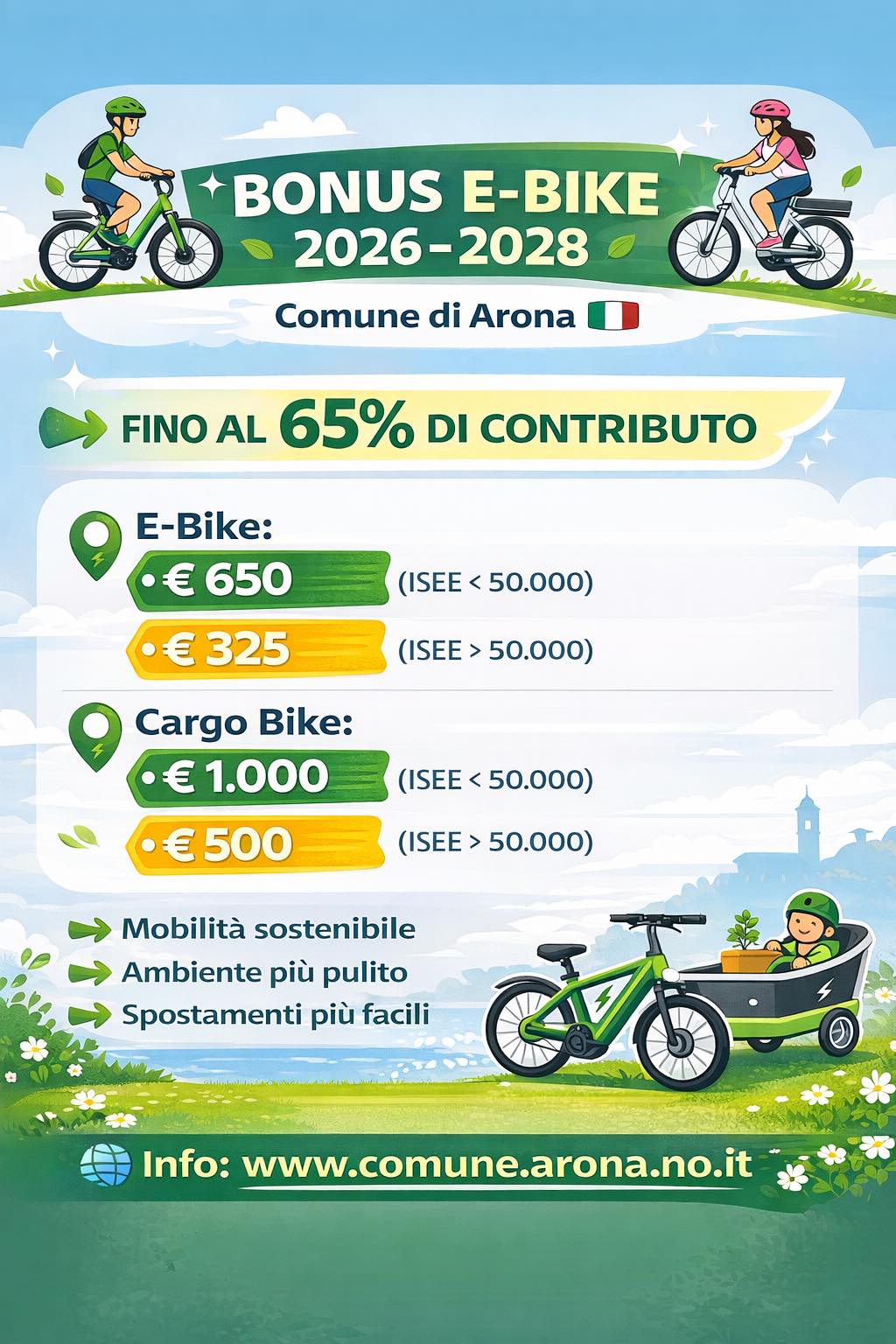 Bonus E-Bike 2026-2028: il Comune di Arona lo conferma anche per i prossimi tre anni.