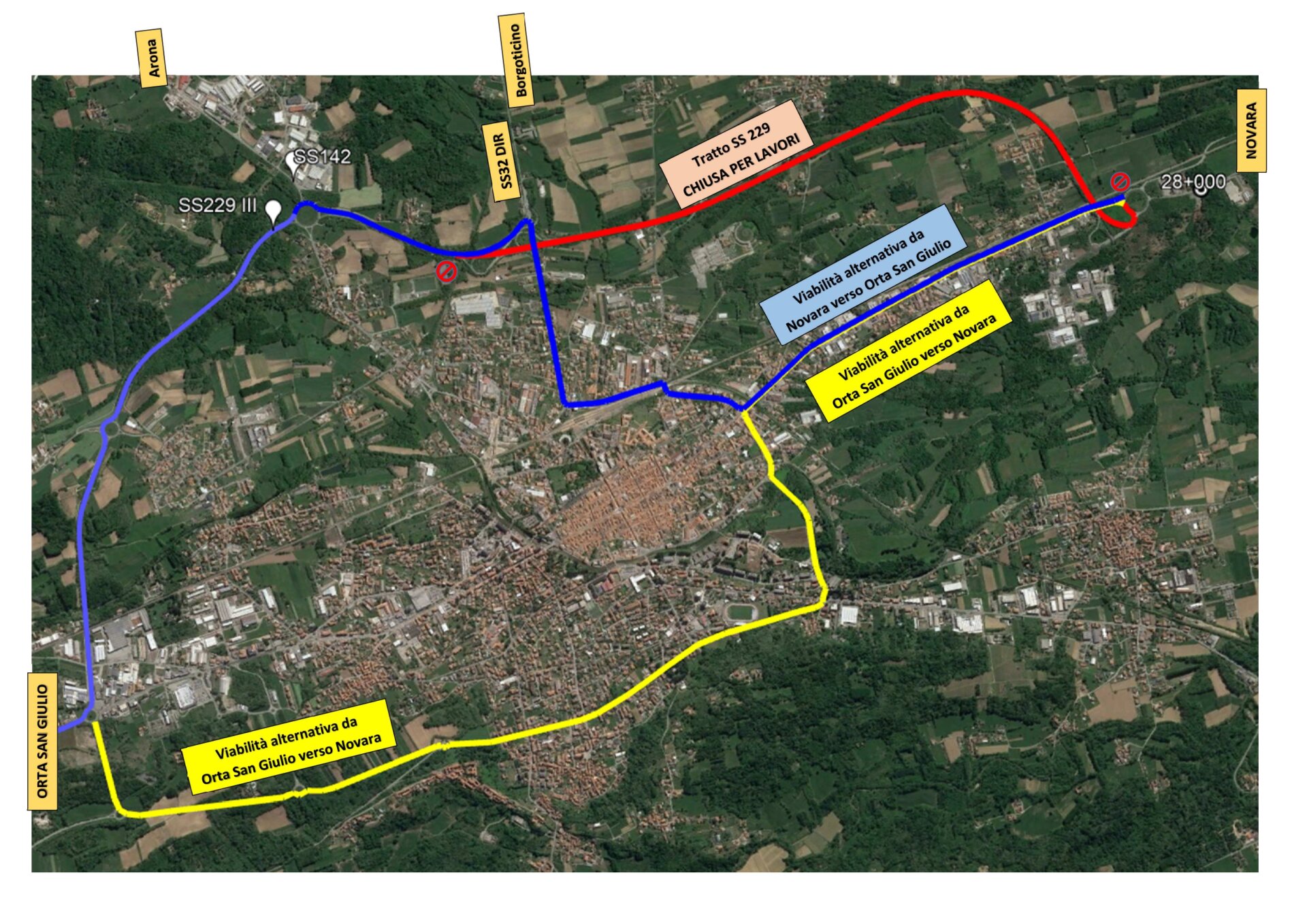 Con una recente ordinanza il responsabile della struttura territoriale di ANAS, ha disposto la chiusura della Strada Statale 229 variante di Borgomanero dalla rotonda denominata Meda sino allo svincolo con la Strada Statale 32 Dir Gattico. La chiusura sarà operativa dalle 00.00 di lunedì 17 ottobre sino alle 24 di sabato 22 ottobre. In alternativa, per raggiungere la strada per Arona è consigliabile percorrere via Novara, via XXIV maggio, Via Piave e via Maggiate imboccando poi nuovamente la statale 229 VAR (viceversa da Arona per Novara). Per Orta San Giulio, via Novara, viale Marconi, via Pertini, via Caduti nei lager nazisti, via Monsignor Franzi, via Papa Giovanni XXIII e via Gozzano (viceversa da Orta per Novara) . La chiusura è dettata, spiega la nota ANAS,  dall’esigenza di poter realizzare in sicurezza, i lavori di rifacimento della pavimentazione ammalorata.