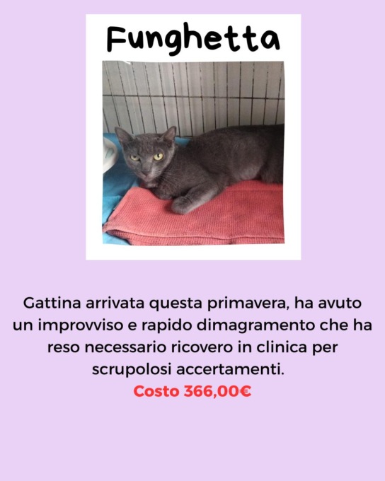 “Non ci siamo tirati indietro – spiegano dall’associazione – li abbiamo fatti curare tutti per farli stare meglio, e adesso stanno bene. Ma ora dobbiamo saldare i conti della clinica convenzionata, che ammontano complessivamente a 4.482,95 euro. Per farlo abbiamo bisogno del vostro prezioso aiuto, che speriamo non venga a mancare”.