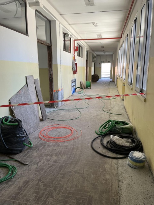 L’opera ha già visto diverse demolizioni interne per la posa dei pannelli isolanti sull’intero involucro, la posa delle nuove reti impiantistiche, il rifacimento dei servizi igienici.