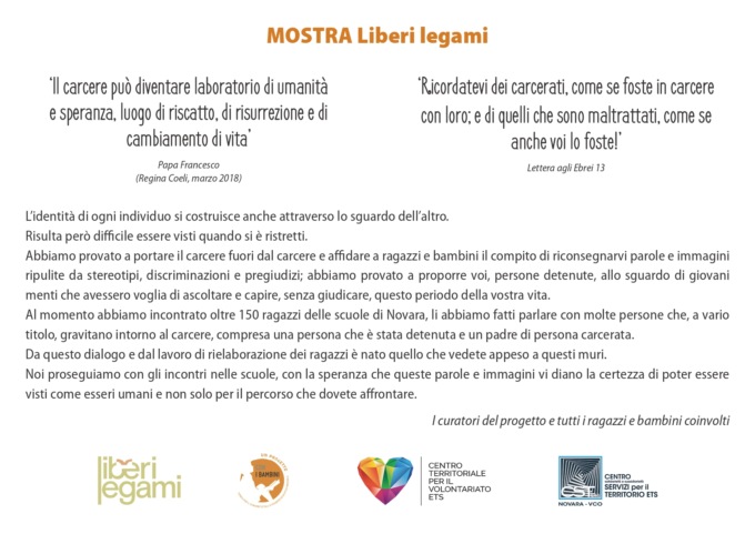 Un’iniziativa dal forte valore simbolico e umano quella promossa all’interno del carcere di Novara, dove è stata inaugurata la mostra “Liberi legami”, frutto del lavoro degli studenti della scuola media Pier Lombardo e del liceo artistico Casorati.