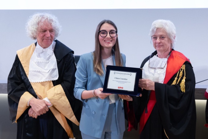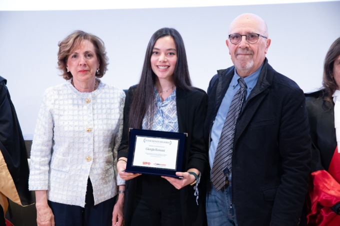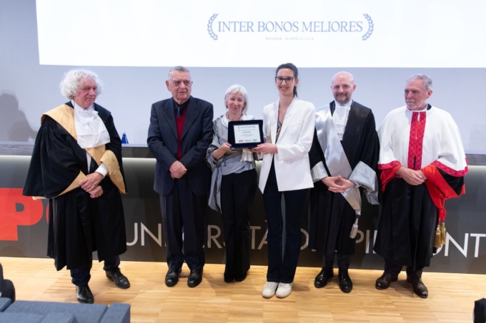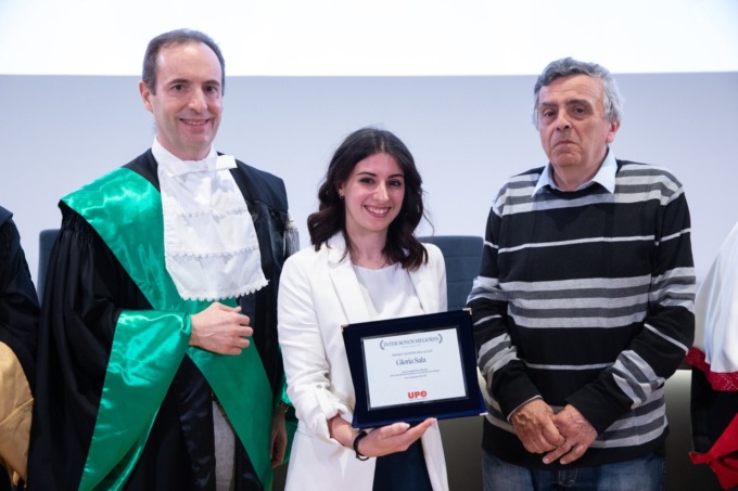 In collaborazione con l’associazione UPO Alumni sono stati consegnati altri 7 premi speciali: a Giorgia Romani il premio “Eugenio Inglese”, intitolato alla memoria del professor Inglese e assegnato dall’associazione UPO Alumni alla miglior tesi sulla pandemia da Covid 19, non solo in ambito medico-sanitario, ma anche sociale e/o economico.