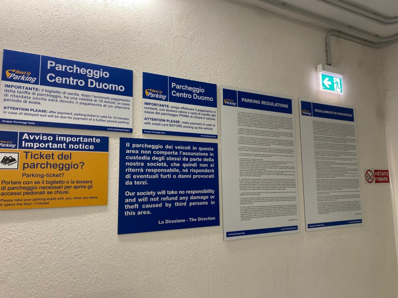 • 1,50 € la prima ora; 2 € le ore successive; 19 € massimale giornaliero;