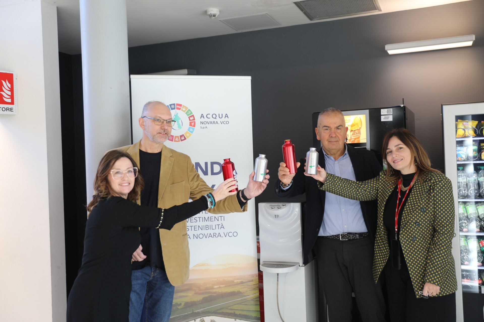 All’inaugurazione erano presenti, per Acqua Novara Vco, Alessandro Garavaglia, Direttore Relazioni Esterne & ESG, e Chiara Casé.