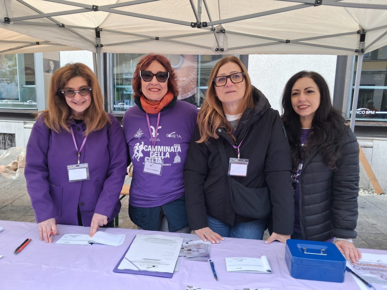 Sono stati circa duecento i partecipanti alla camminata non competitiva di 5 chilometri, che ha attraversato le vie del centro cittadino in un’ondata di magliette e palloncini viola, colore simbolo della lotta contro il tumore al pancreas.