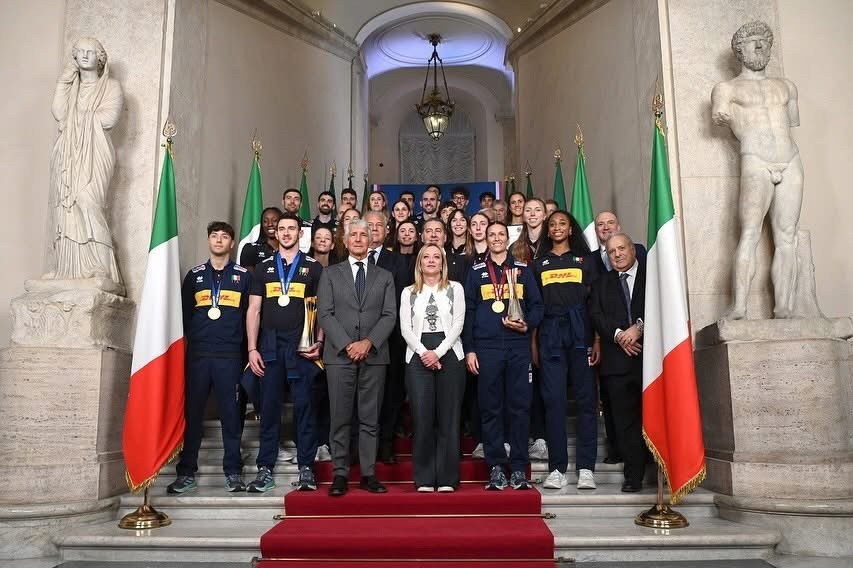 Dopo la visita al Quirinale, le due nazionali si sono spostate a Palazzo Chigi, dove sono state accolte dalla Premier Giorgia Meloni e dal ministro dello Sport Andrea Abodi.