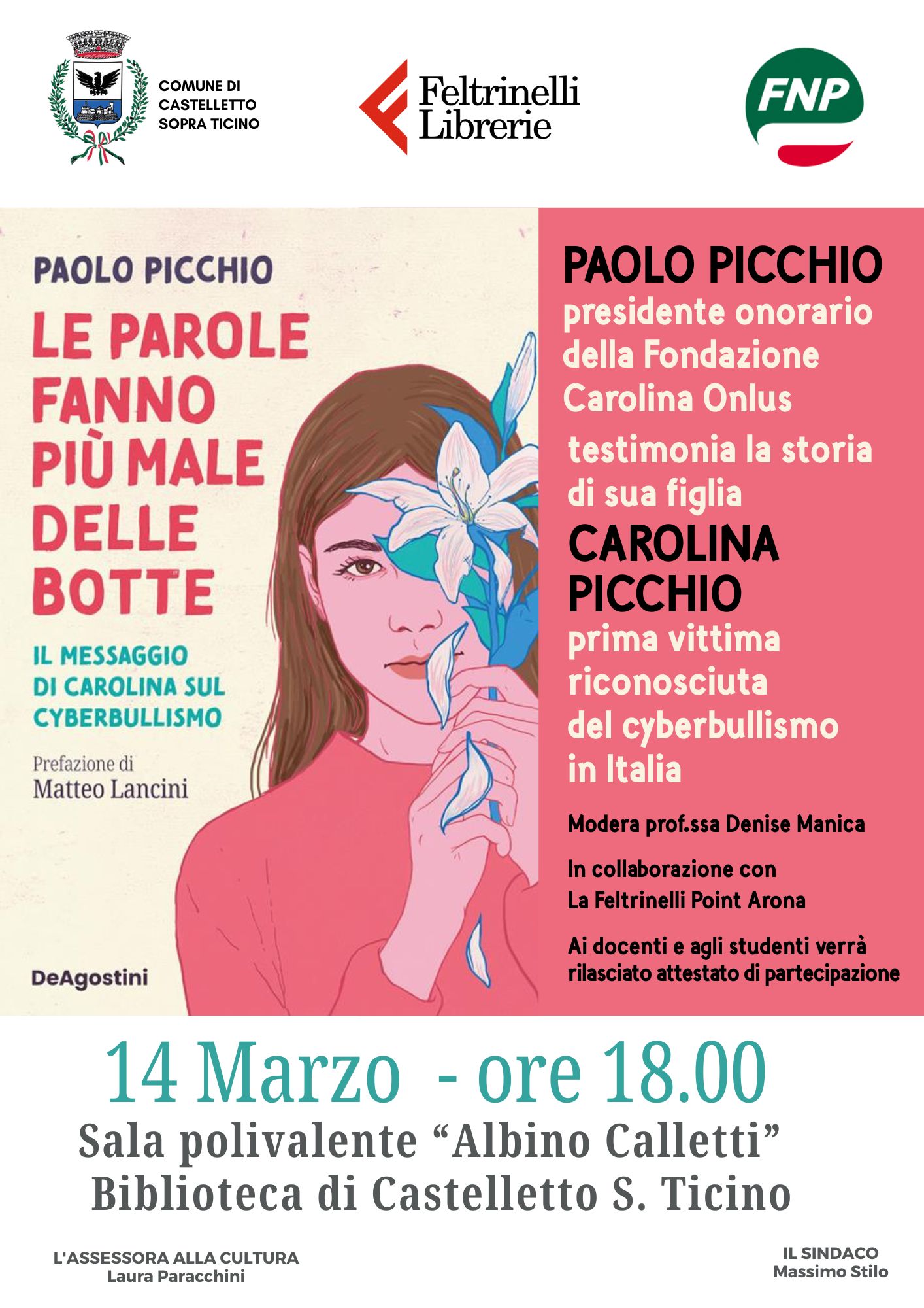 Durante l’incontro, organizzato in collaborazione con FNP e la libreria La Feltrinelli Point di Arona e moderato dalla prof.ssa Denise Manica, Paolo Picchio presenterà il suo libro “Le parole fanno più male delle botte. Il messaggio di Carolina sul cyberbullismo”, in cui racconta la