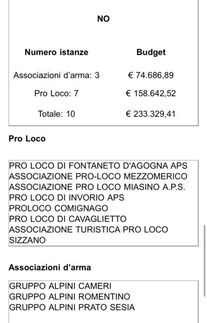 Ora l’arrivo del nuovo contributo da 3 milioni di euro da parte del Cipess (il Comitato interministeriale per la programmazione economica e lo sviluppo sostenibile) ha reso possibile il loro accesso al finanziamento regionale. Esse vanno così a raggiungere le 160 Pro Loco e 78 Associazioni d’arma già finanziate con la prima tranche di contributi dal bando regionale, portando a 358 il totale dei soggetti che beneficiano del sostegno della Regione Piemonte. Questi 3 milioni sono suddivisi in 900mila euro alle Associazioni d’arma e 2,1 milioni alle Pro Loco. Con la nuova tranche, il sostegno della Regione alle Pro Loco e Associazioni d’arma erogato a partire dal 2020 arriva a toccare i 10 milioni di euro.