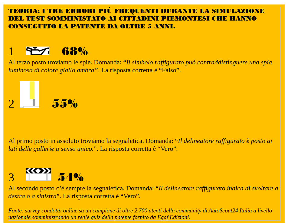L'indagine è impietosa: il 44.2% dei novaresi non supera il test scritto per la patente.
