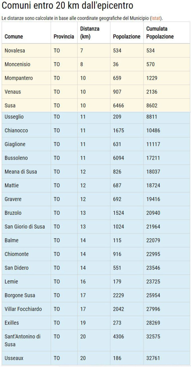 Come riporta la tabella di comparazione sotto riportata la soglia di avvertibilità per la popolazione è fissata a 2.5 di magnitudo: