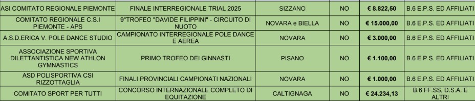 “Progetti di eccellenza sportiva”, al fine di sostenere le iniziative di presentazione della stagione sportiva 2025/2026, per un importo di € 50.000,00.