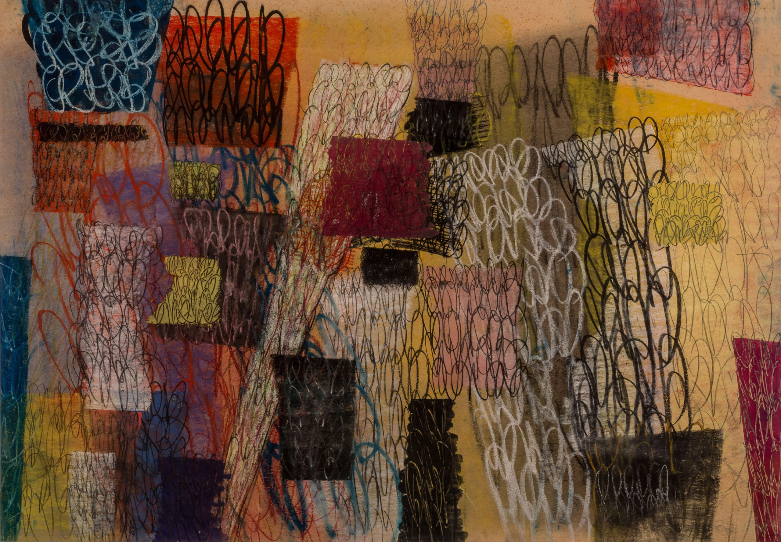 Il percorso espositivo esplora le poetiche dei principali protagonisti dello Spazialismo milanese, fucina creativa delle ricerche del movimento, con opere di Gianni Dova, Cesare Peverelli (sua l’opera nella foto), Emilio Scanavino, Ettore Sottsass, Beniamino Joppolo, Aldo Bergolli, Gian Carozzi, autori interessati a implicazioni surrealiste ed esistenziali, sostenuti dalle iniziative espositive e culturali di Cardazzo, gallerista aperto a confronti internazionali e al coinvolgimento collezionistico con Peggy Guggenheim, aspetti che conferiscono allo scenario spazialista importanti riferimenti cosmopoliti. La rassegna documenta inoltre il notevole contributo al movimento da parte degli spazialisti veneziani, giunti alla sperimentazione sulla fenomenologia spaziale tra il 1951 e il 1952: Virgilio Guidi, Tancredi Parmeggiani, Mario Deluigi, Edmondo Bacci, Vinicio Vianello, Gino Morandis, Bruna Gasparini, Ennio Finzi, Saverio Rampin e Bruno De Toffoli, protagonisti delle dirompenti novità verificate dalla pittura astratta degli anni cinquanta, con una sensibilizzazione squisitamente veneta alla luce, al colore e a un linguaggio transitato da scansioni spaziali in tramature astratte, al fascino del vuoto palpitante di segni e di deflagrazioni cromatiche.