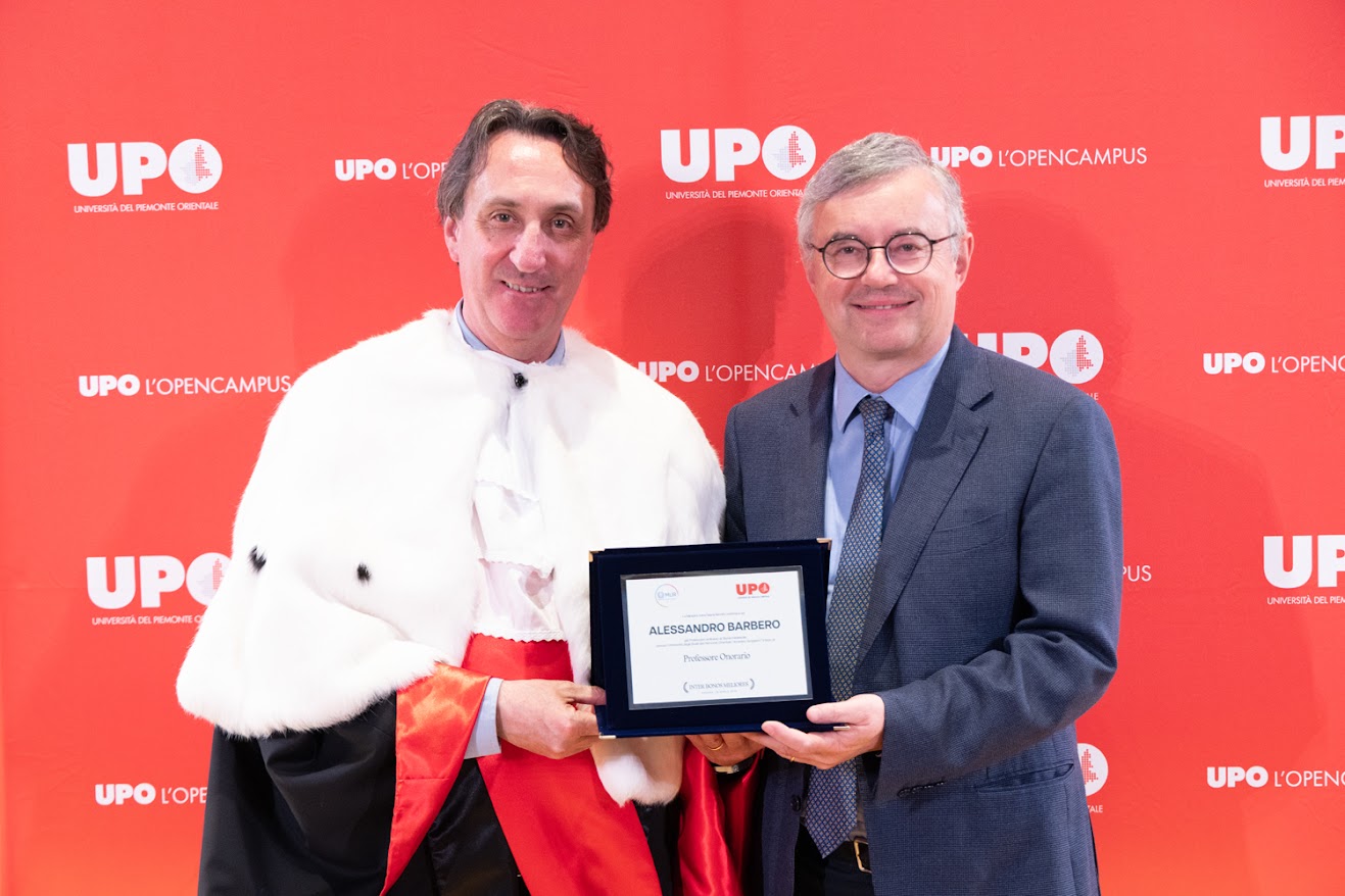 A chiudere la cerimonia è stato l’omaggio al professor Alessandro Barbero, a cui è stata consegnata la targa per il titolo di Professore Onorario conferito dal Ministero dell’Università e della Ricerca. Docente UPO dal 1998 al 2024, Barbero è stato riconosciuto per il suo contributo accademico e per la capacità di trasmettere la passione per la storia a intere generazioni di studenti.