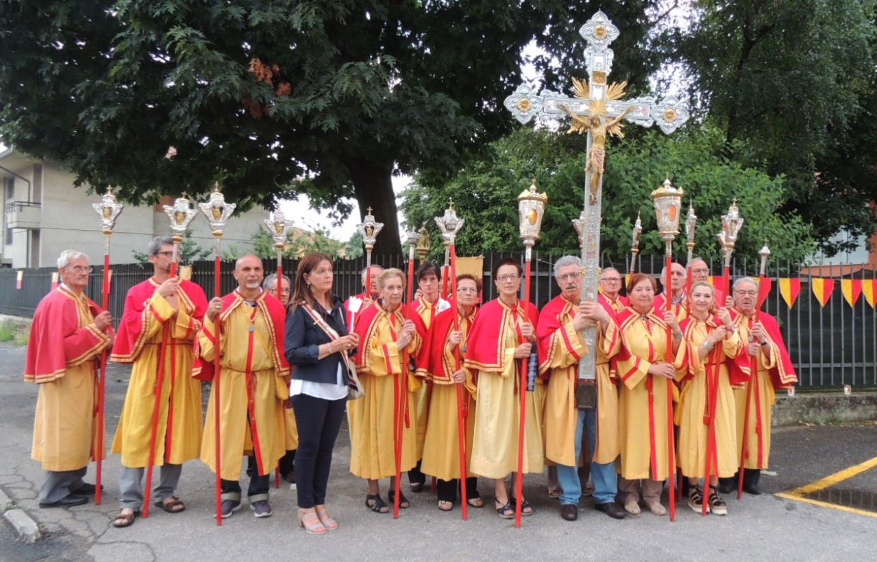 Ad aprire la processione la locale Confraternita della B.V. del Carmelo e a seguire tutte le altre Confraternite: Pia Unione del Transito di San Giuseppe di Biella, San Giovanni Battista di Bolzano Novarese, Ss. Sacramento di Borgolavezzaro, San Pietro di Gargallo, Ss. Trinità e Santa Croce di Graglia, San Martino e San Giovanni Battista di Lesa, Arciconfraternita del Ss. Sacramento di Miasino, Ss. Sacramento e S. Rosario di Paruzzaro, Ss. Sacramento di Somma Lombardo, Confraternita della Morte e l’Associazione religiosa Vergine Santissima Annunziata di Ficarra di Vigevano e la Confraternita Santa Croce di Trofarello in provincia di Torino rappresentata nella circostanza da Franca Minazzoli, di origine borgomanerese.