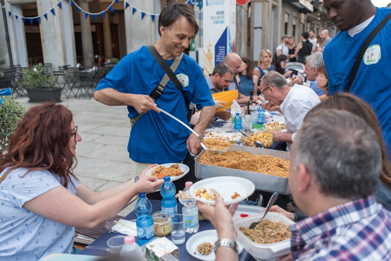Tutti occupati i posti a disposizione per “Borgo in Blu 2018”. La Cena di Comunità è stata promossa da Fondazione Comunità Novarese Onlus, sabato 9 giugno a Borgomanero. All’organizzazione hanno contributo l’amministrazione comunale e le associazioni partner dell’evento (Terre della Croatina, La Mimosa Amici del DH Oncologico, Anffas Borgomanero, Gazza Ladra), entusiaste e presenti. La cena è stata rallegrata dalla musica della band Divario che ha diffuso note e divertimento sotto le stelle.