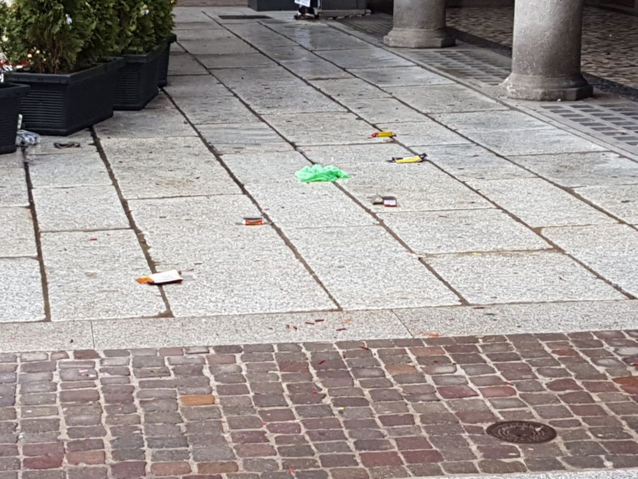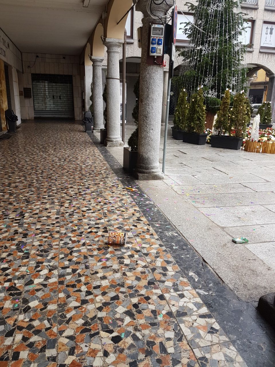 Il centro storico della città e i resti dei festeggiamenti: inciviltà di Capodanno a Borgomanero.