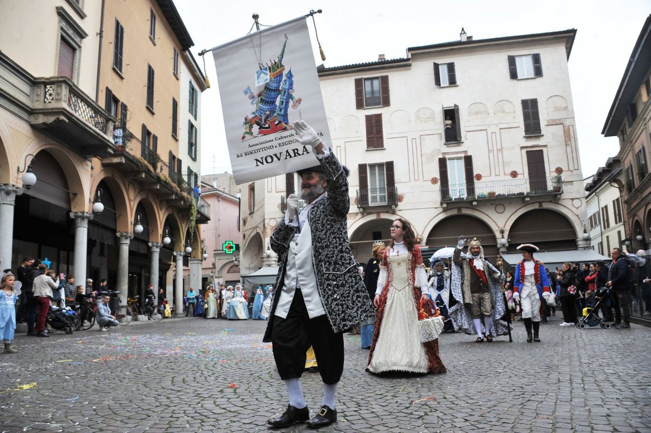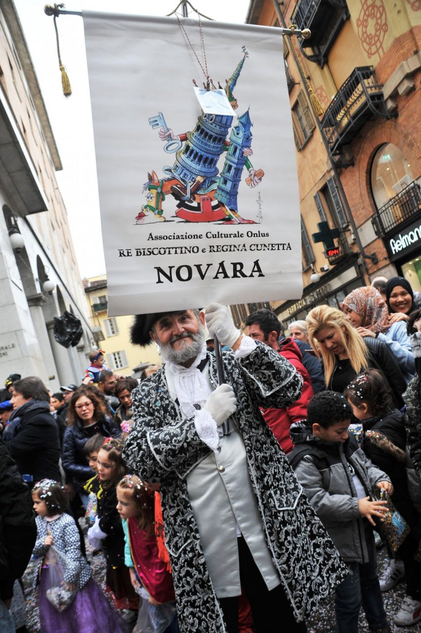 Da corso Cavour la sfilata è poi continuata verso l’Angolo delle Ore per concludersi al Broletto, letteralmente invaso, dove è avvenuta la tradizionale consegna delle chiavi della città da parte del sindaco Canelli a Re Biscottino e dove sono state presentate le numerose maschere intervenute da varie parti d’Italia. “Ciao Novara – ha detto il Re Biscottino – ringrazio il sindaco per avermi affidato la città e  tutti i presenti e in particolare i bambini”. Erano presenti alla festa anche il Doge di Venezia, i torinesi Gianduia e Giacometta, il Bicciolano di Vercelli, il gruppo del Granducato di Bergamo e ancora i gruppi folcloristici della Suca Band di Oleggio, le Majorettes di Valduggia, gli sbandieratori e musicisti di Asti, oltre a innumerevoli maschere e travestimenti di ogni genere.