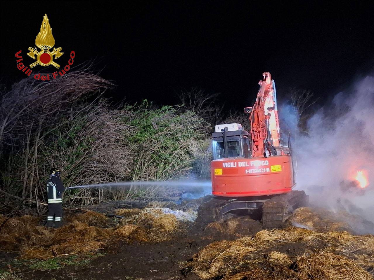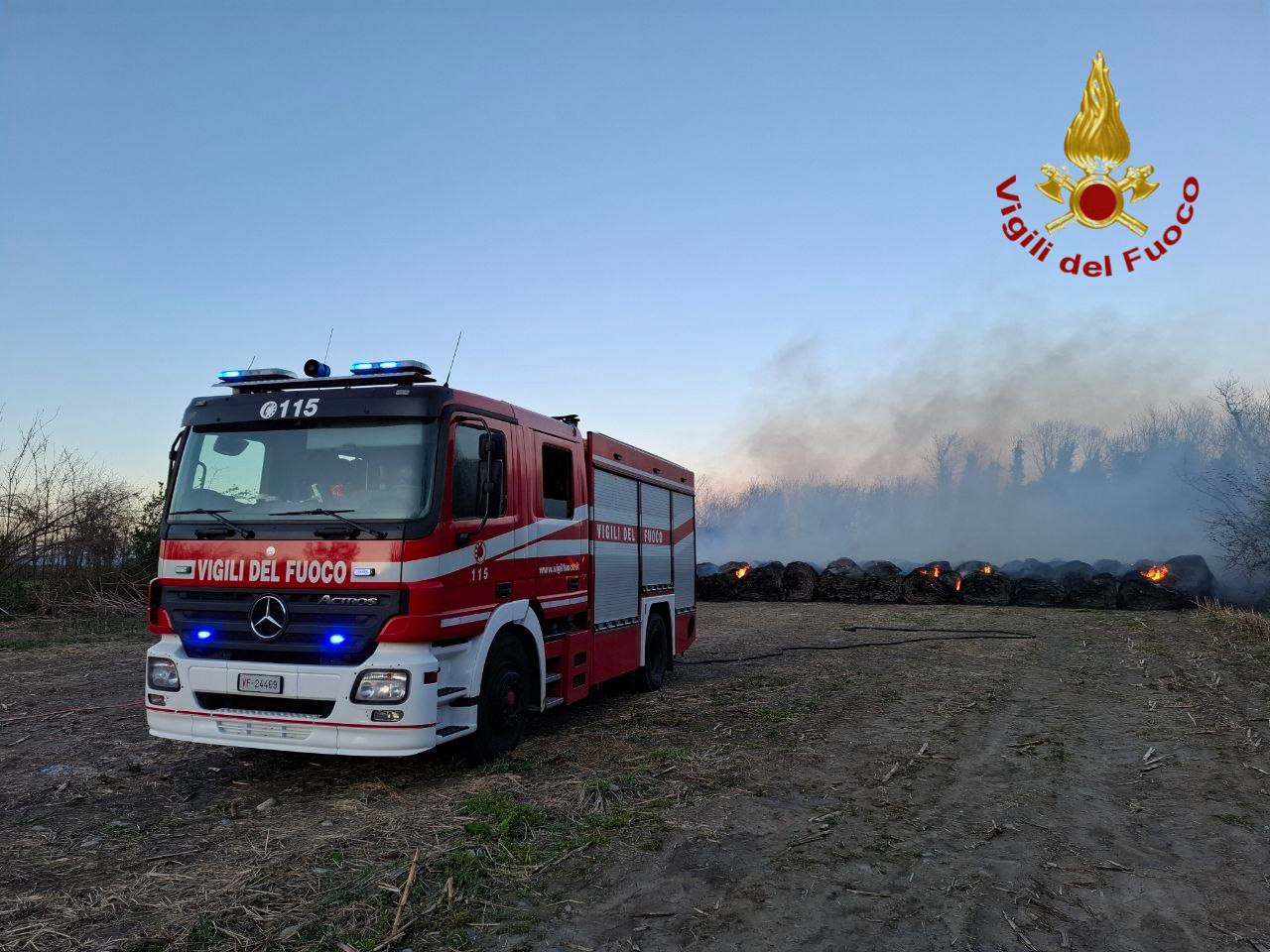 All’arrivo sul posto, i pompieri hanno accertato che le fiamme stavano interessando numerose rotoballe di fieno, alimentate anche dal forte vento che da giorni interessa il territorio.
