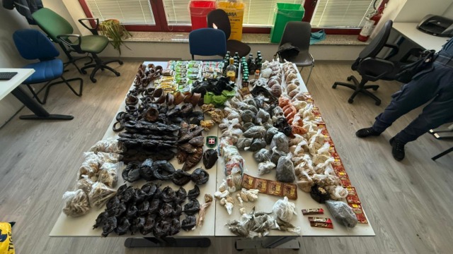 Come si può evincere dalle immagini, si tratta principalmente di prodotti alimentari, tra cui spezie e condimenti confezionati, radici e prodotti essiccati, bottiglie di oli o salse, oltre a una grande quantità di pesce essiccato o affumicato e altri alimenti conservati in sacchetti.