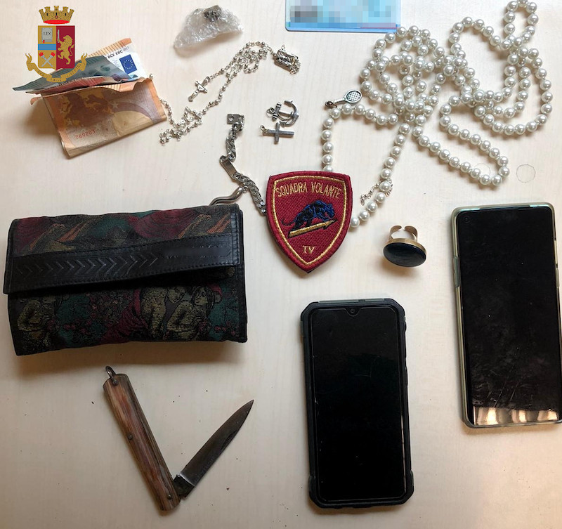 A seguito delle perquisizioni personali e del veicolo, la Polizia di Stato ha rinvenuto una buona parte della refurtiva che è stata restituita ai legittimi proprietari, 2 smartphone, 110 euro e alcune collane e ciondoli.