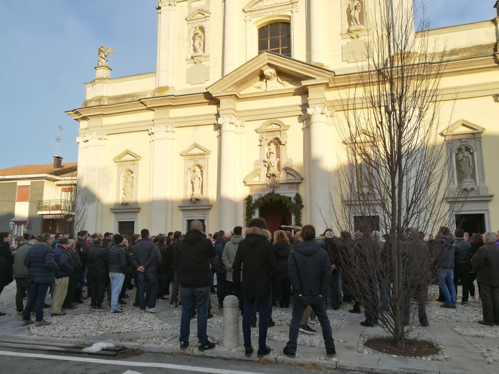 Funerale Iazzini: la chiesa di Fontaneto era piena di amici e parenti che hanno voluto dare l’ultimo saluto al ragazzo di 21 anni.