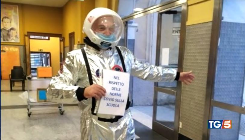 Ha fatto parlare molto l’iniziativa di Giovanni Campagnoli, preside del Don Bosco di Borgomanero, che per accogliere gli studenti al primo giorno di scuola si è vestito da astronauta.