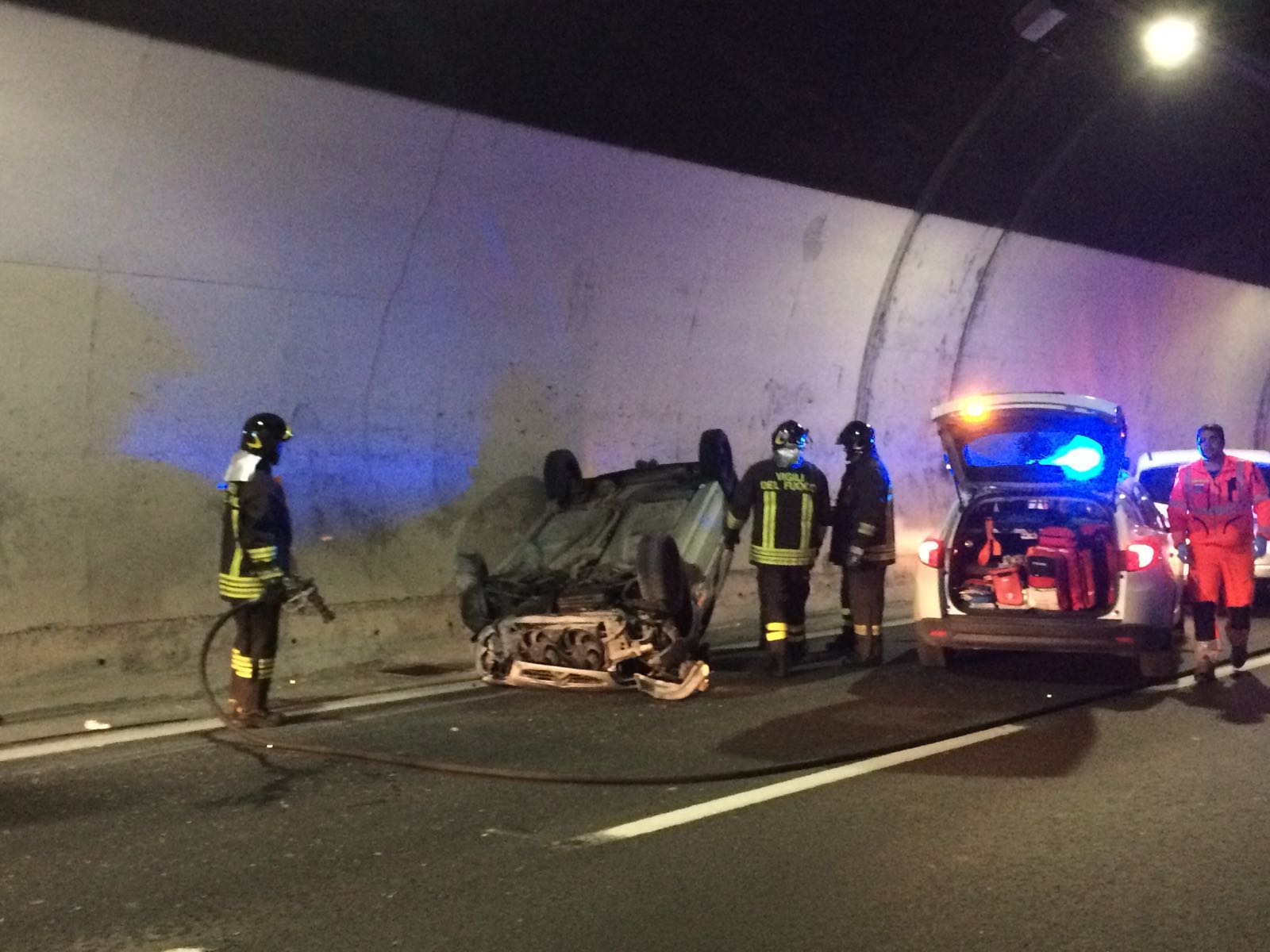 Incidente auto: una macchina si ribalta all’interno della galleria