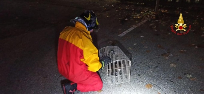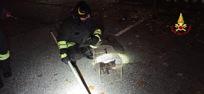 Vigile del fuoco percorre 80 metri di tubatura sottoterra per recuperare un gattino investito da un’auto a Massino Visconti.