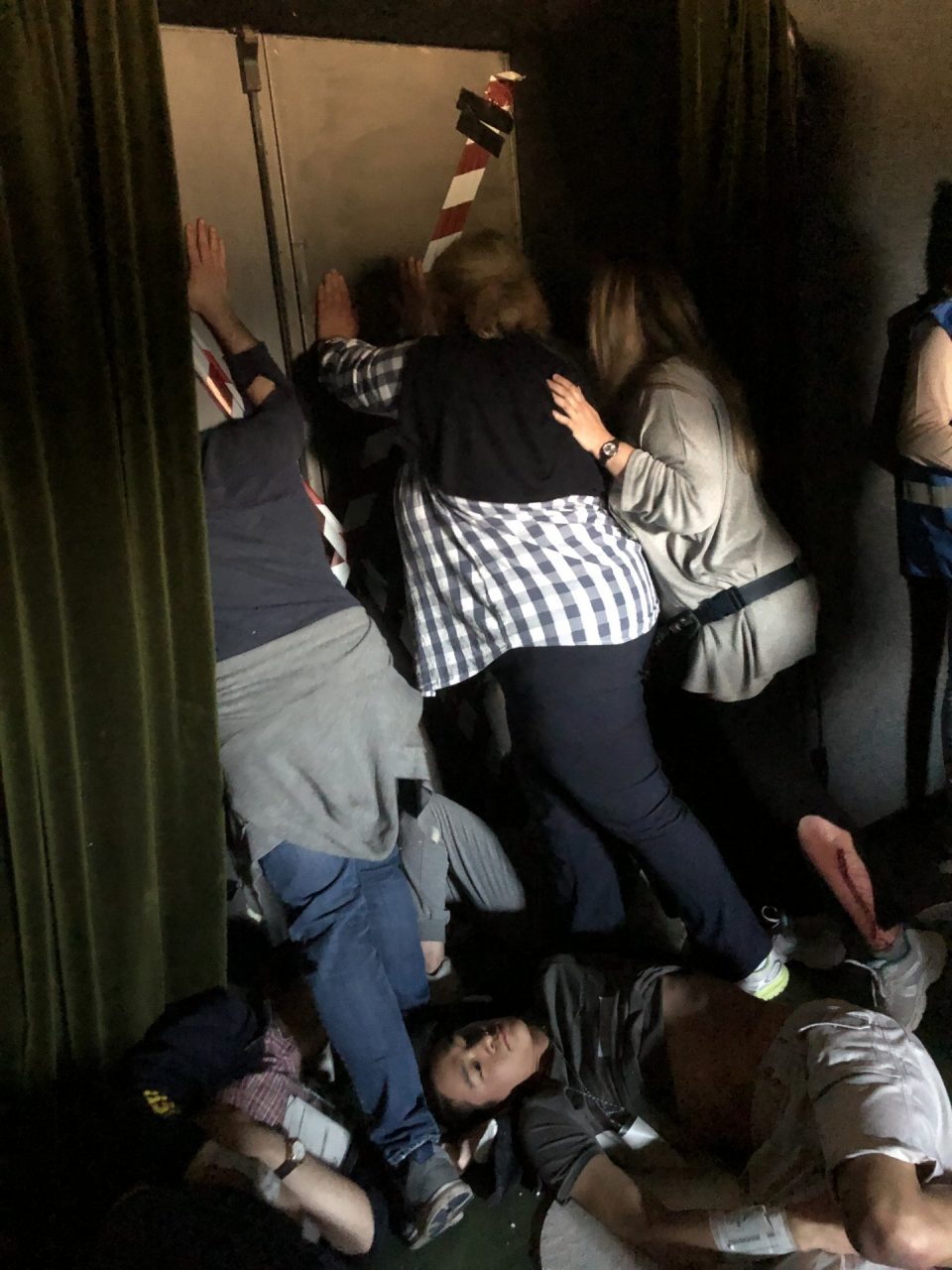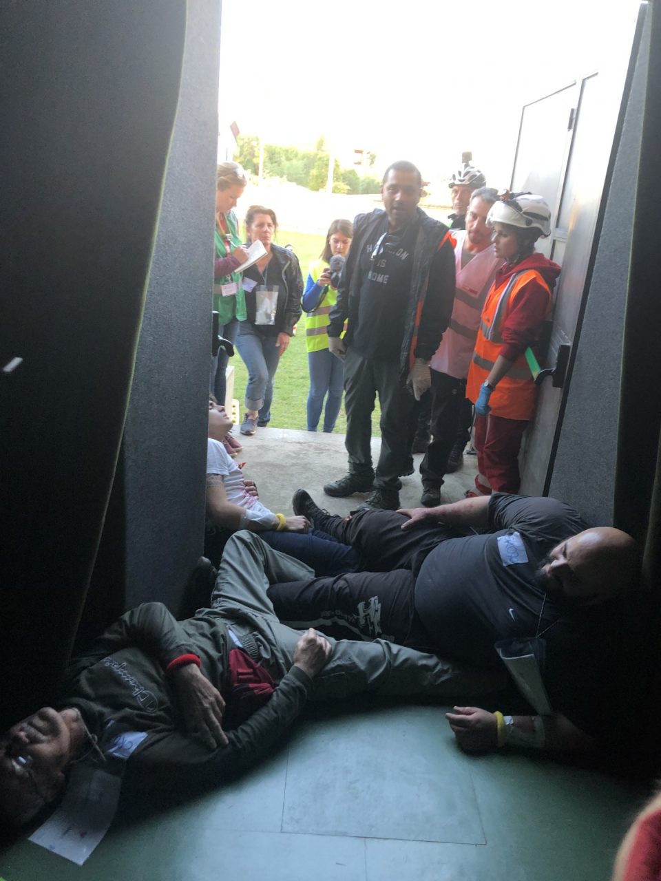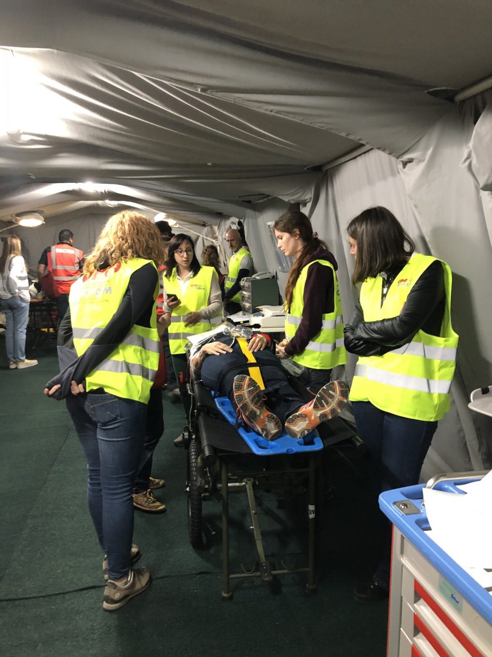 Dopo il segnale d’inizio, i 35 masterizzandi, provenienti da tutto il mondo, hanno dato il via alle operazioni di salvataggio presso l’Oratorio Vandoni. Qui studenti di medicina e professionisti sanitari, addestrati al ruolo di vittime e appositamente truccati, hanno finto di essere coinvolti nel crollo di un teatro. Alla prima messa in salvo dal luogo dell’incidente con la divisione nei vari codici d’emergenza, è seguita la corsa all’ospedale da campo – con volontari della Cri di diversi paesi – e la simulazione di interventi medici presso gli appositi reparti. Il tutto si è concluso alle 22.30 con un totale di 14 codici rossi, 19 gialli, 65 verdi e 7 neri.