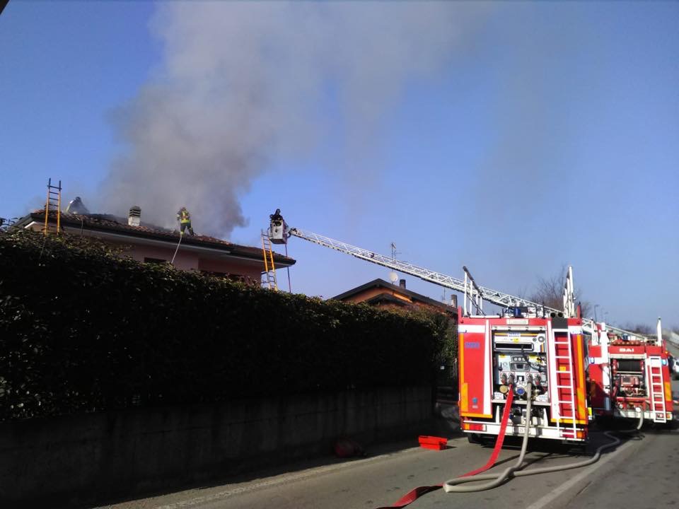 Una squadra dei vigili del fuoco di Arona con il supporto di un’autoscala dal comando di Novara e di una squadra dal distaccamento volontari di Romagnano sono intervenuti oggi pomeriggio, martedì 19 febbraio 2019, a Castelletto sopra Ticino in via Caduti della libertà alle 14.30 per l’incendio di un tetto.