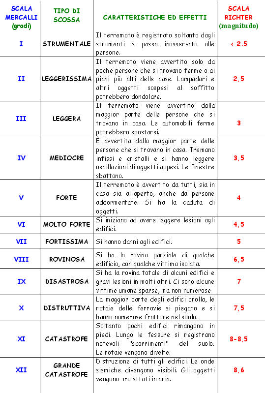 Ecco la scala dell’avvertibilità degli eventi sismici, il cui limite è magnitudo 2.5: