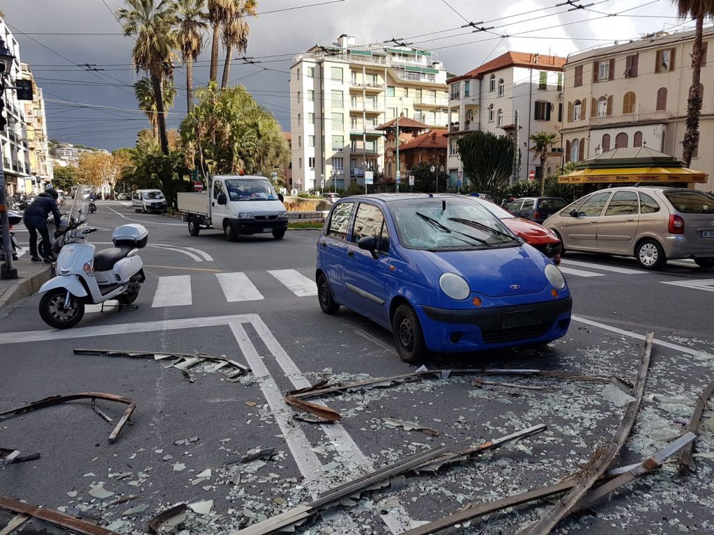 Una tromba d’aria originatasi al largo di Portosole, si è abbattuta su Sanremo, verso le 12.50, provocando diversi danni. Soprattutto tra via Roma, corso Garibaldi, via XX Settembre e via Nino Bixio. Tra cui il distacco di alcune vetrate e addirittura di un camino, che è precitato quindi sulla strada. Danni anche a moto e auto. Diverse le chiamate infatti ai vigili del fuoco.