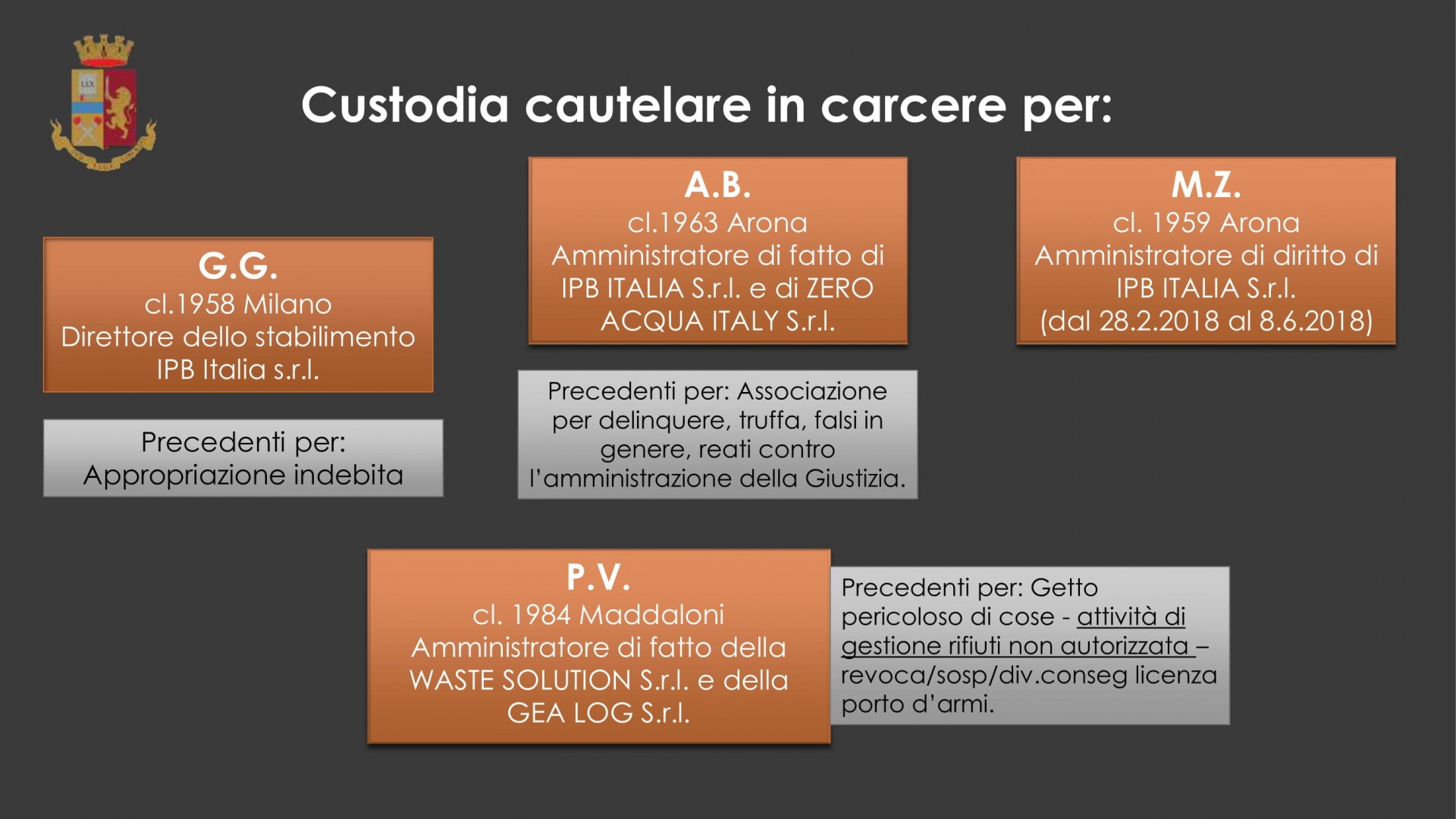 Si tratta di Aldo Bosina, di 55 anni, di Arona, amministratore della Ipb Italia srl di via Chiasserini, ritenuto promotore ed organizzatore del traffico di rifiuti. È inoltre indagato per calunnia.