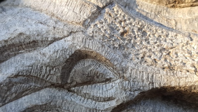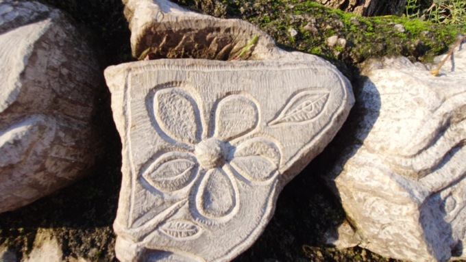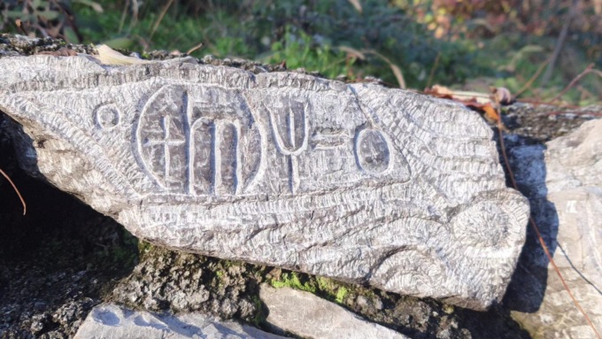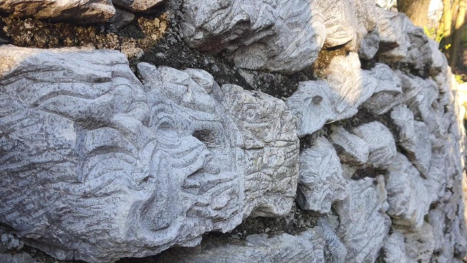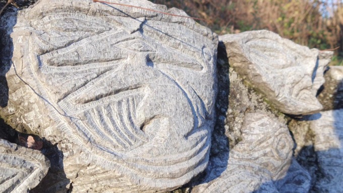 Una delle 1070 pietre scolpite da Remo Ponti ad Albino