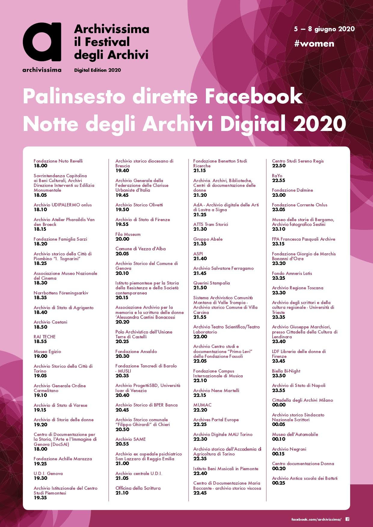 Di seguito il palinsesto di tutte le dirette social della “Notte degli Archivi”: