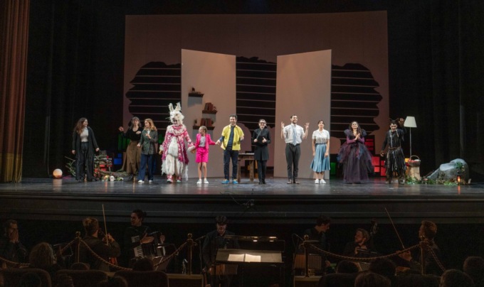 E così sul palco, con la regia di Enrica Rebaudo e le scene firmate dalla stessa Rebaudo con Erika Chilò (entrambe allieve Amo come i cantanti), hanno preso vita il Commissario che Francesco Congiu ha reso credibile e simile a tanti adulti costretti a rinunciare alle proprie passioni, la Strega con la bella voce piena di Maria Chiara Scarale divisa tra fornelli e pettegolezzi con l’amico Lupo interpretato dallo straordinario baritono Pasquale Greco: la paura del successo e la paura del fallimento hanno cantato delusioni e speranze, in attesa che Cenerentola, il soprano ricco di sfumature Clementina Regina, riuscisse a far capire al Commissario come fosse pericoloso dimenticare le proprie passioni.