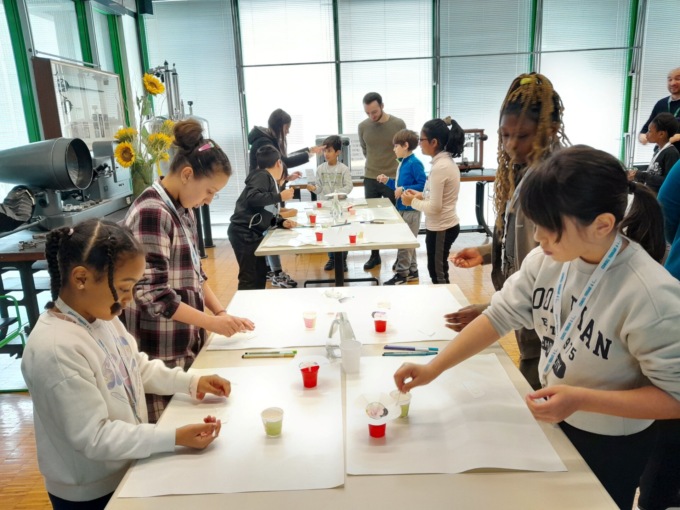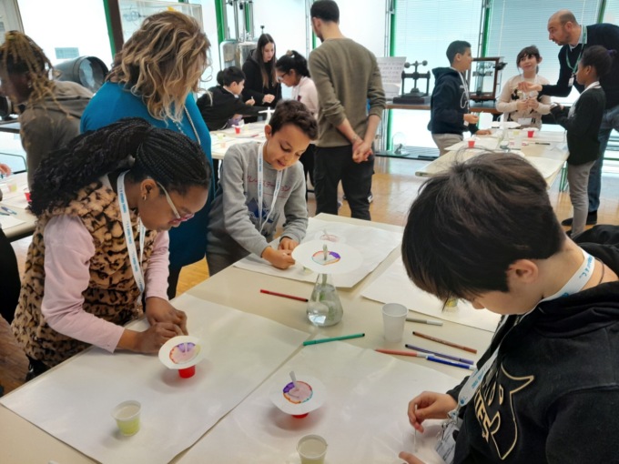 La prima classe che ha partecipato è stata la 4A della scuola primaria Rigutini di Novara: guidati dai ricercatori di chimica farmaceutica del Dipartimento di Scienze del Farmaco dell’Upo Silvio Aprile e Salvatore Villani i bambini hanno sperimentato con i colori.