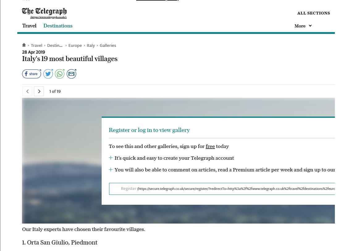 Il quotidiano inglese The Telegraph ha stilato una classifica dei 19 borghi più belli d’Italia: al primo posto Orta San Giulio.