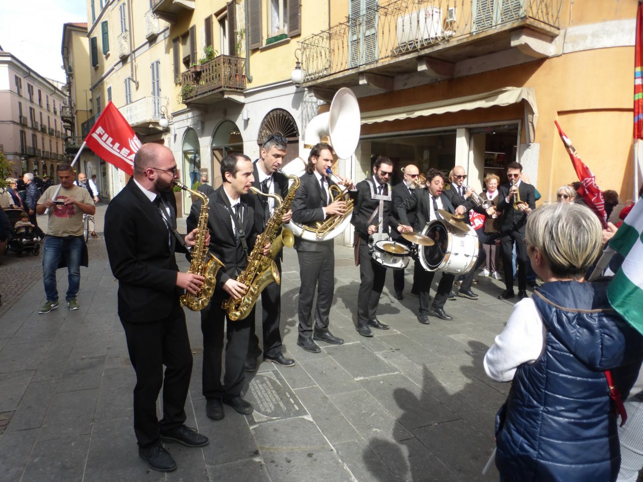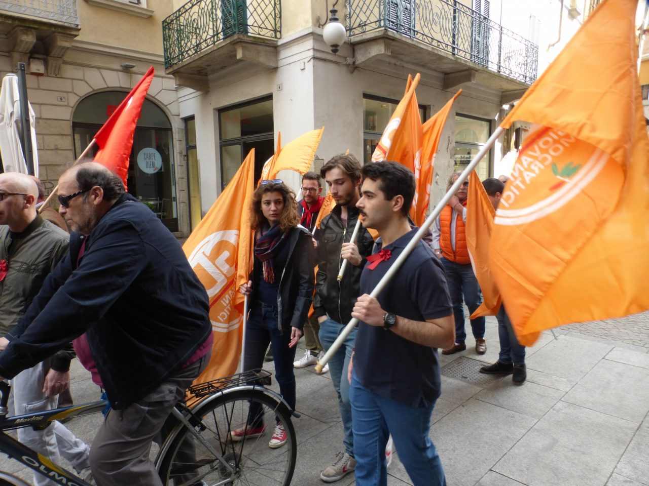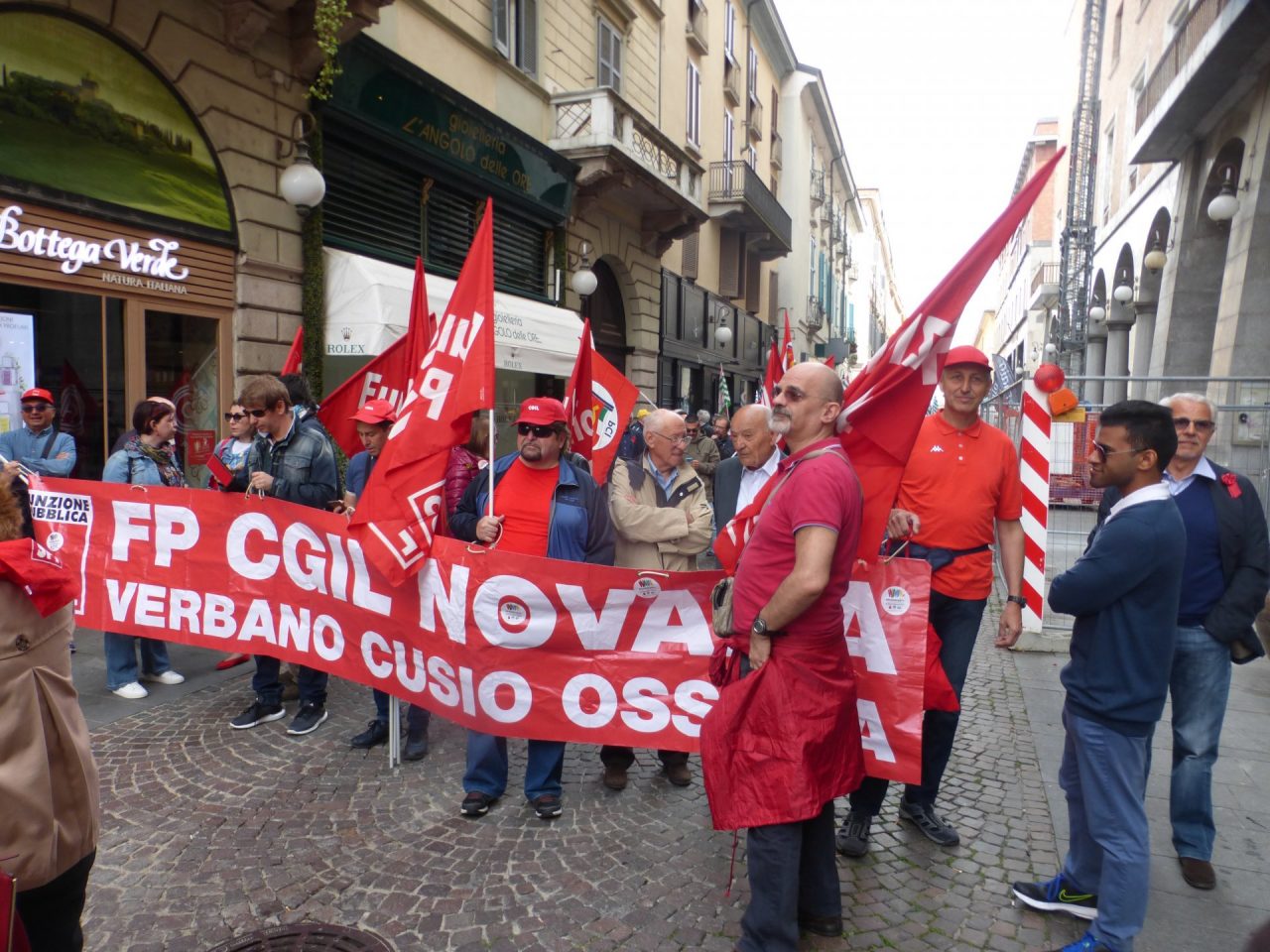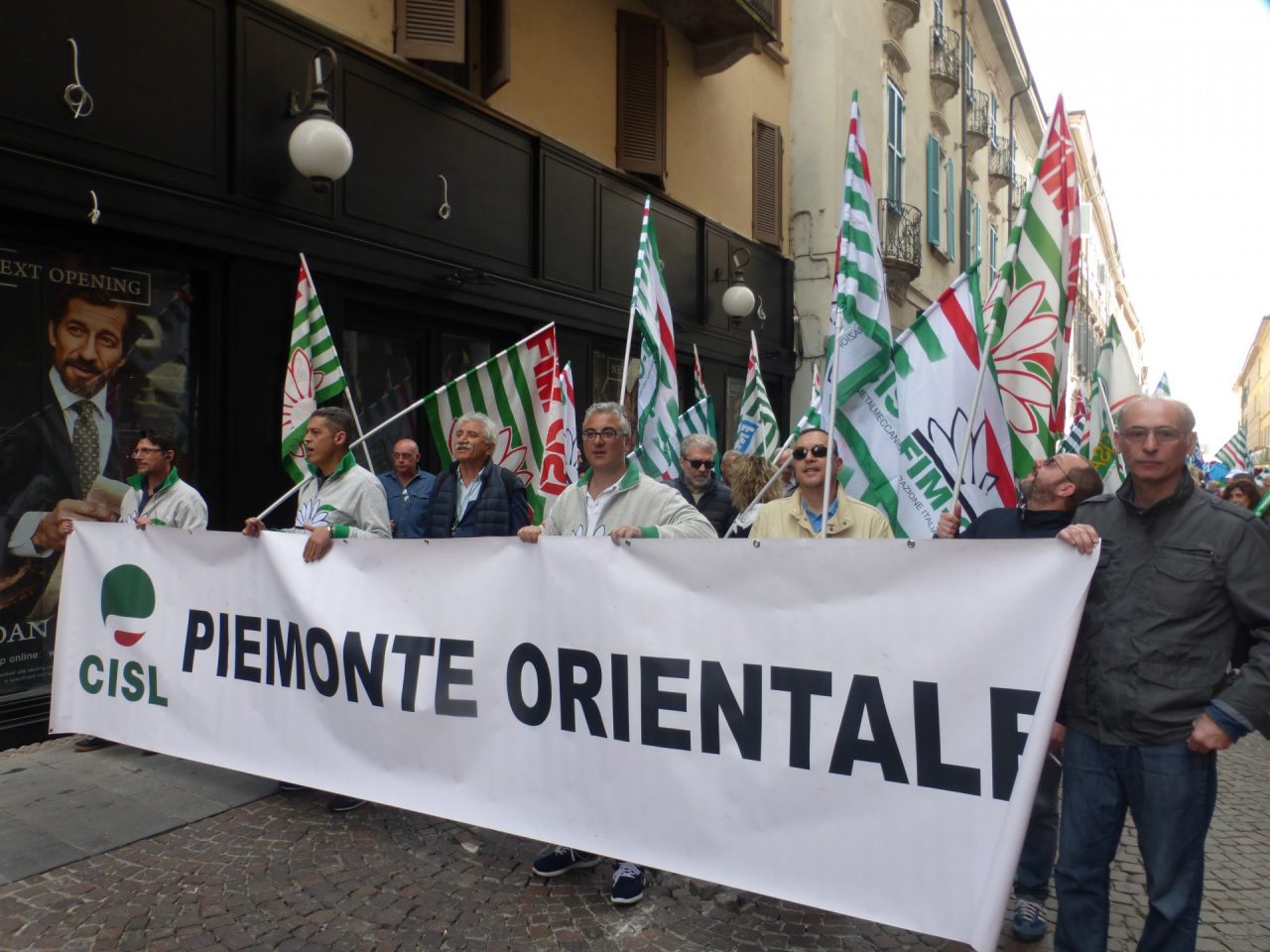 Il comizio sul palco di piazza Gramsci ha chiuso la manifestazione unitaria dei sindacati che si era aperta con il lungo corteo che da piazza Cavour ha attraversato le vie del centro accompagnato da centinaia di bandiere, striscioni e dalle note della Banda Cadabra di Torino e della Banda Margherita di Cameri.
