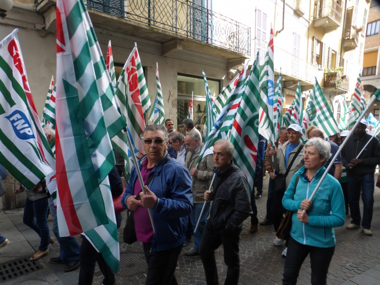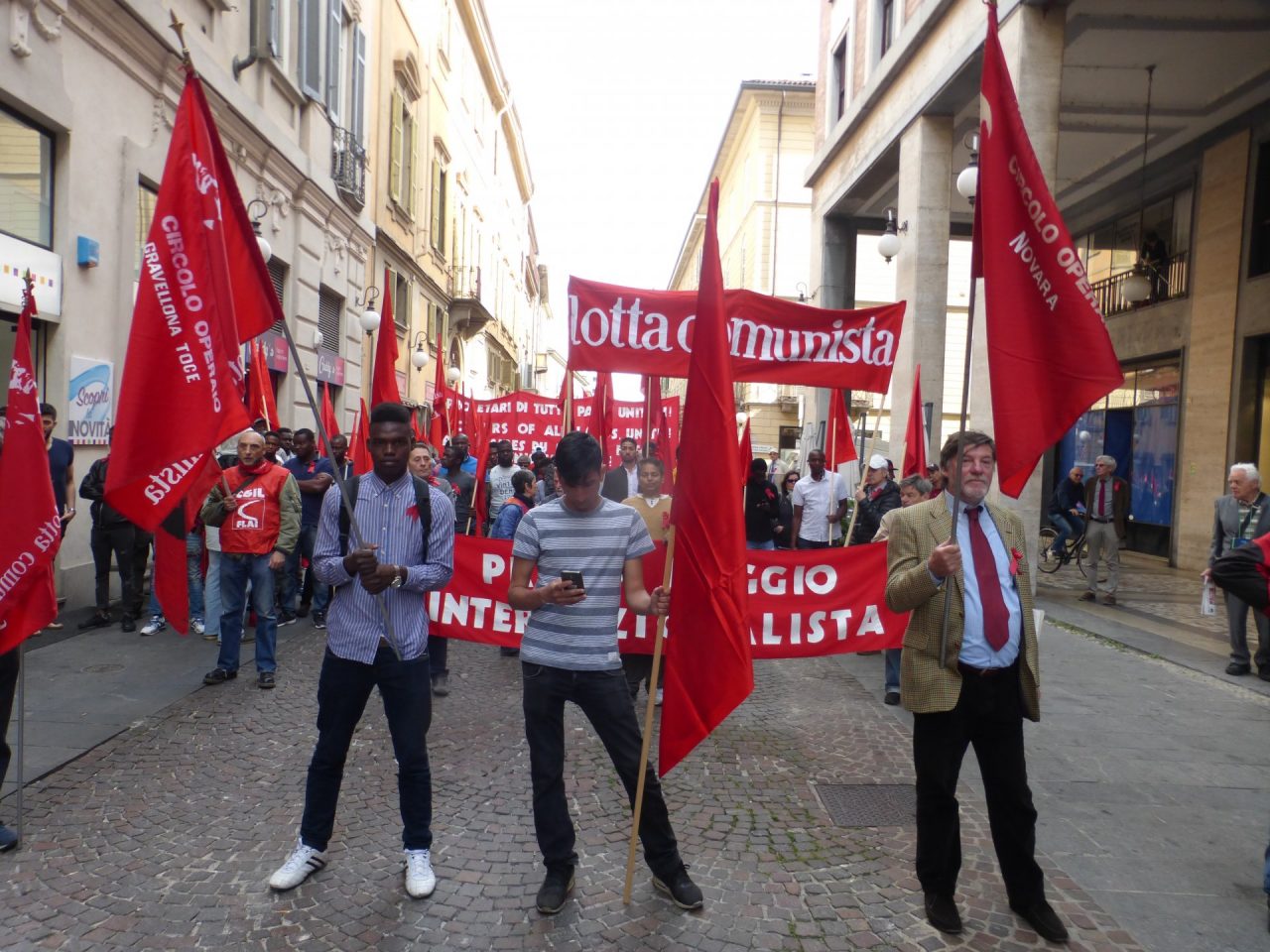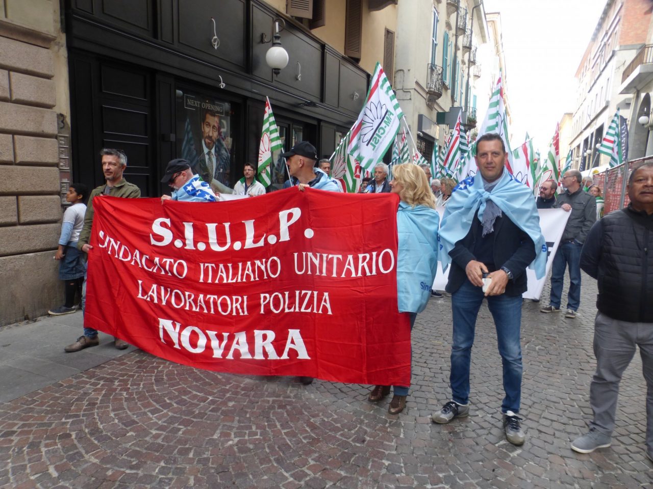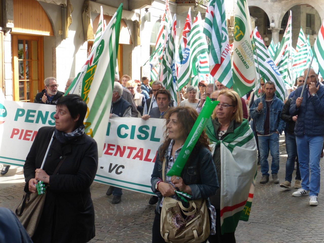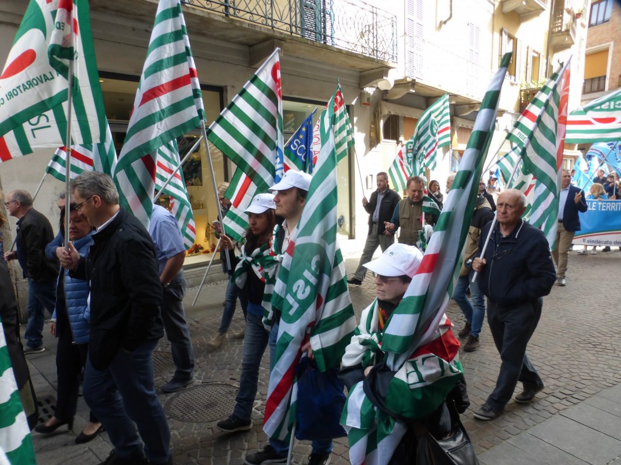 Il comizio sul palco di piazza Gramsci ha chiuso la manifestazione unitaria dei sindacati che si era aperta con il lungo corteo che da piazza Cavour ha attraversato le vie del centro accompagnato da centinaia di bandiere, striscioni e dalle note della Banda Cadabra di Torino e della Banda Margherita di Cameri.