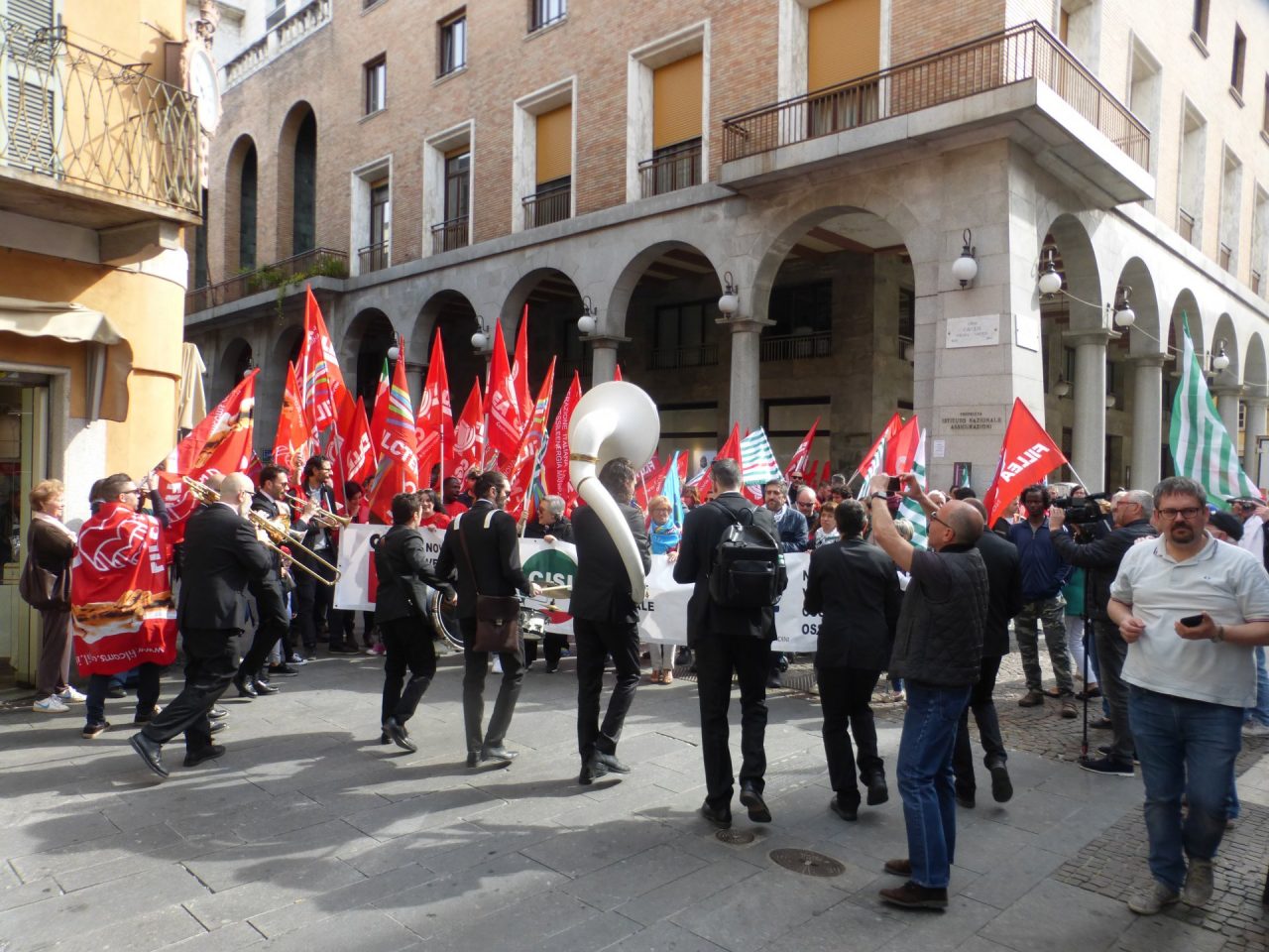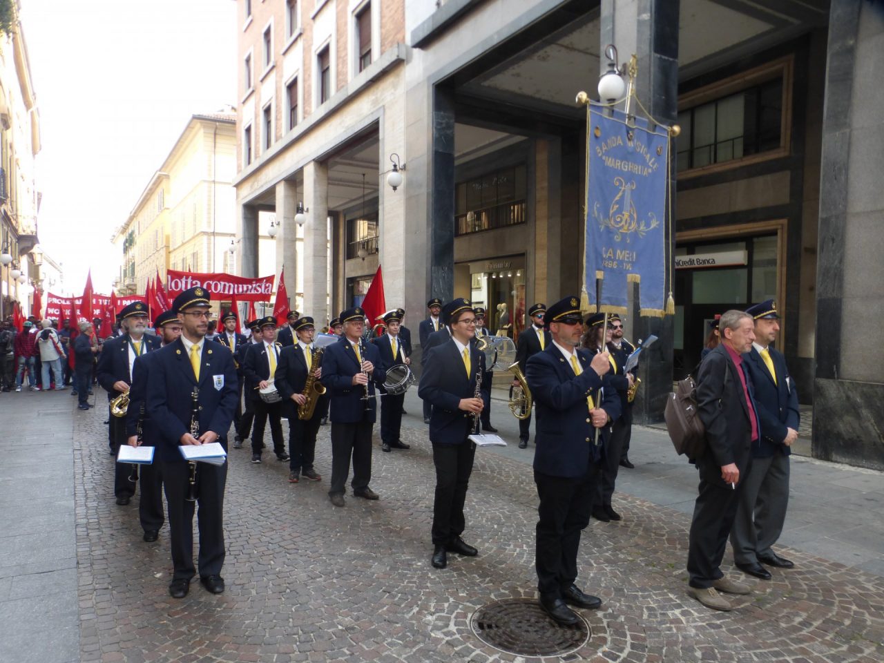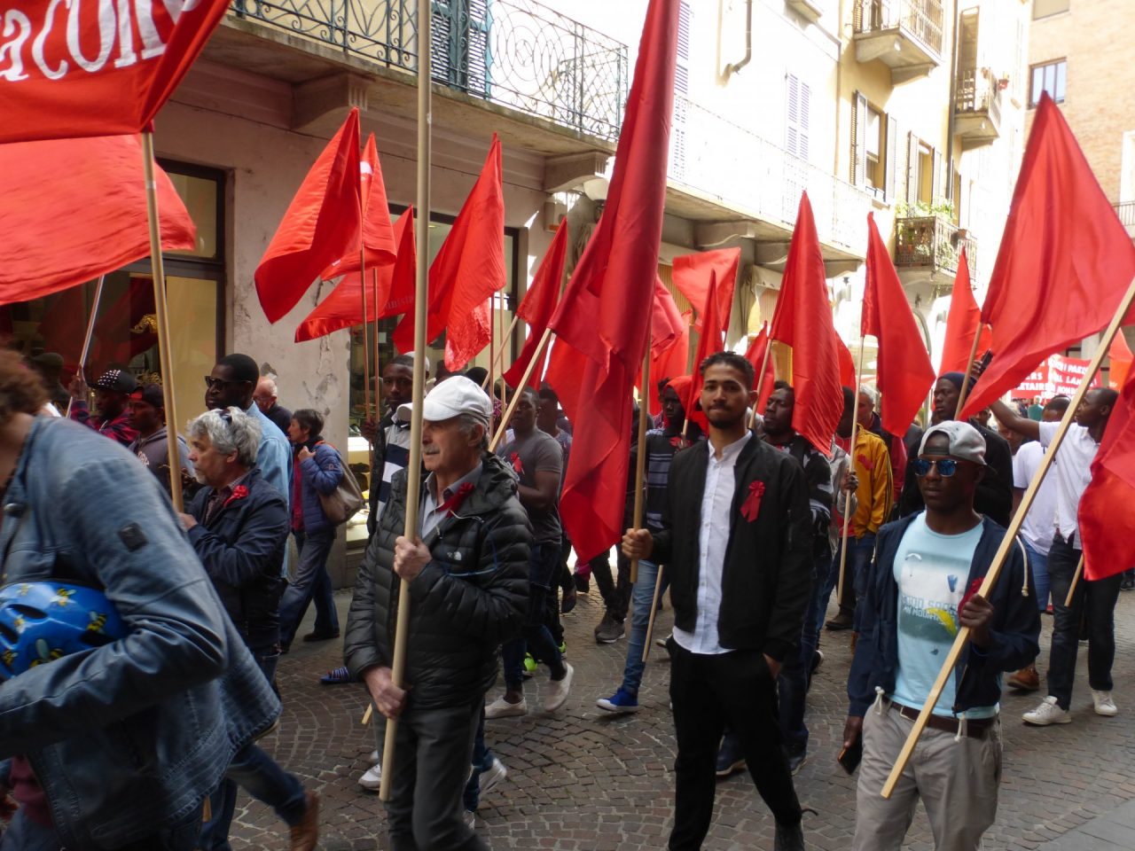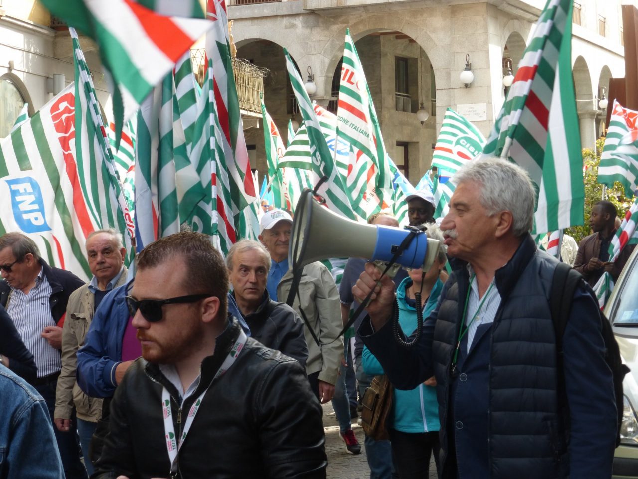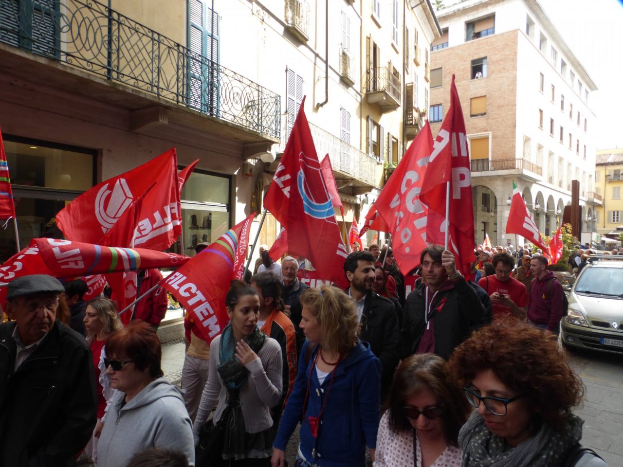 Il comizio sul palco di piazza Gramsci ha chiuso la manifestazione unitaria dei sindacati che si era aperta con il lungo corteo che da piazza Cavour ha attraversato le vie del centro accompagnato da centinaia di bandiere, striscioni e dalle note della Banda Cadabra di Torino e della Banda Margherita di Cameri.
