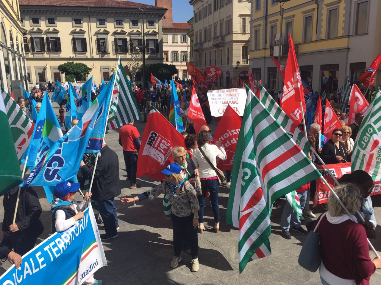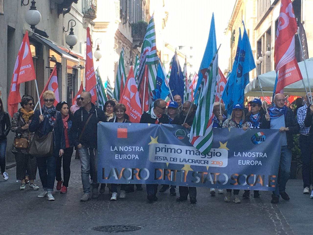 Oltre 700 persone in corteo e poi in piazza a Novara per la manifestazione del 1° maggio, promossa dai sindacati confederali Cgil Cisl e Uil e che quest’anno aveva come tema l’Europa.