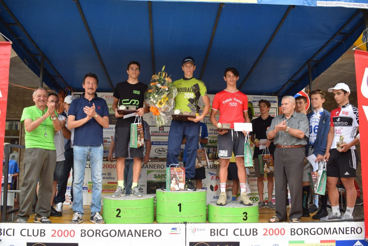Sul podio sono saliti, nell’ordine: Damiano Valerio (Madonna di Campagna), Matteo Lovera (Vigor Ciclyn Team), Luca Poggi (SC Pedale Pavese 1920 ASD), Loris Hochstrasser (VC Mendriso), Francesco Mastranegelo (GS Fortebraccio Toscana ASD). Gran Premio Montagna (Vergano,via Castello , al 3° giro): Damiano Valerio, Matteo Lovero, Doris Hochstrasser. Traguardo Volante (via Carlottina, 3° giro): Marco Loverso, Riccardo Ricci, Luca Poggi. Il via è stato dato dall’Assessore allo Sport del Comune di Borgomanero Francesco Valsesia. Equipe presenti da tutta Italia, Svizzera e Francia.