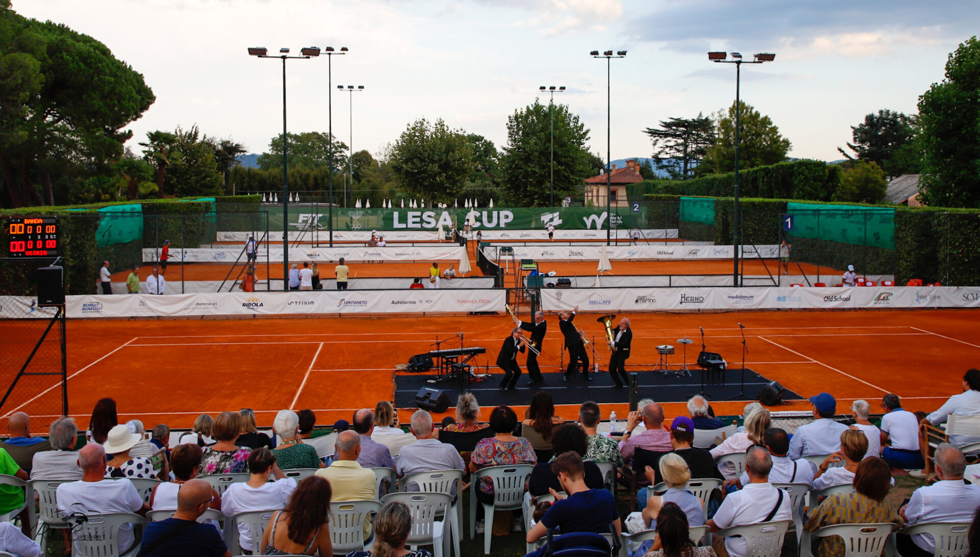 Sabato 27 agosto, nel giorno della finale del doppio e delle semifinali del singolare della Lesa Cup, tra un match e l’altro, il campo da tennis si è trasformato in un palcoscenico musicale. In collaborazione con lo Stresa Festival, al Tennis Sporting Lesa, è andata in scena – o meglio, in campo – la Banda Osiris, quartetto musicale vercellese nato negli anni ‘80 che ha partecipato anche a diverse trasmissioni televisive.