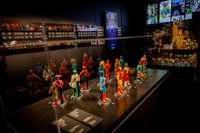 Riproduzioni di reperti archeologici dialogano con comics in edizione americana e italiana, manifesti, action figures, statue e dolls, in un allestimento che coniuga rigore scientifico e forte impatto immersivo.