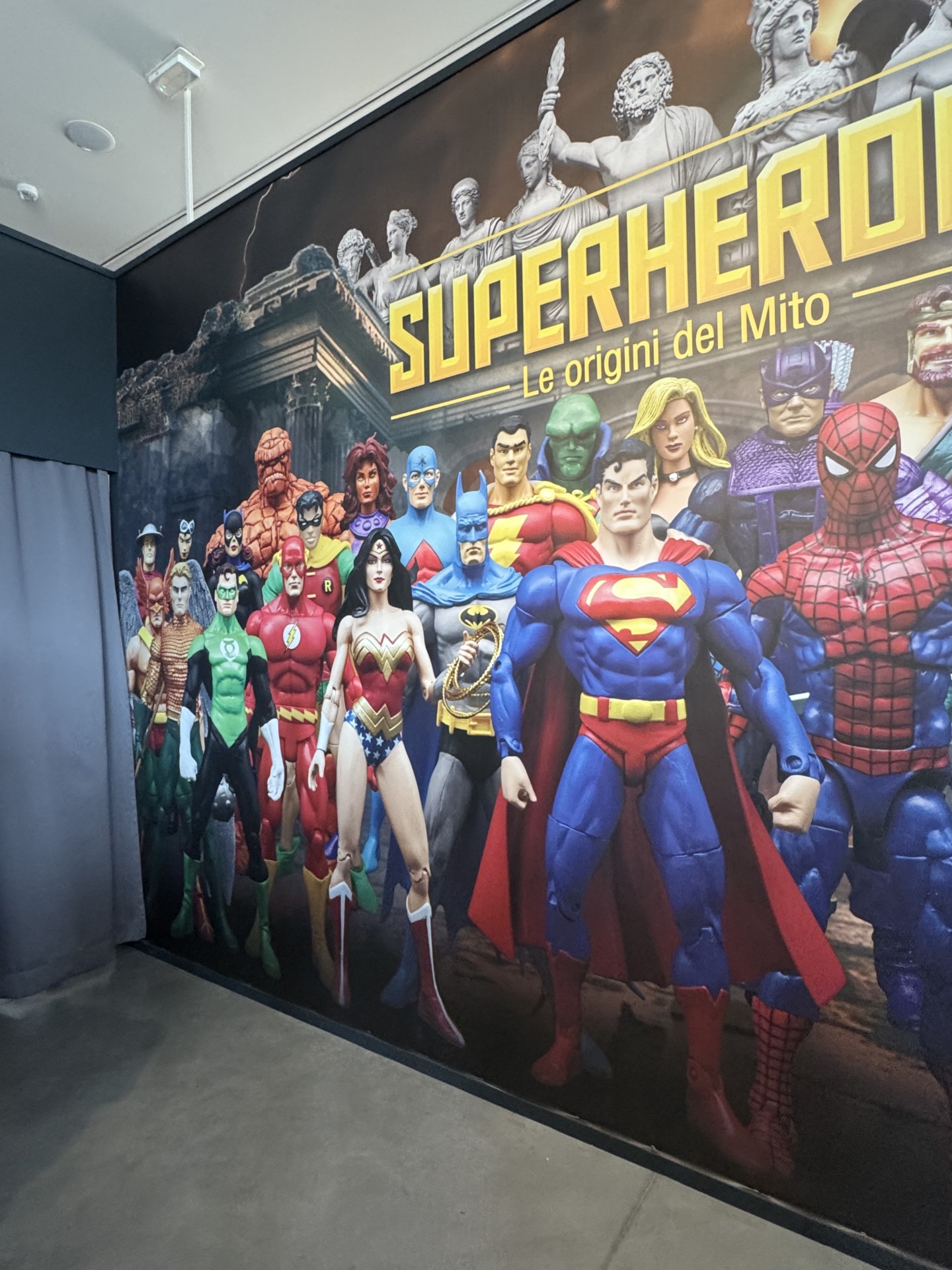 Quando un dio indossa un mantello come Ercole e Superman. Mercurio e Flash. Atena e le Amazzoni e Wonder Woman: la mostra prende le mosse da una premessa tanto semplice quanto affascinante — i supereroi non sono un’invenzione del Novecento, ma gli eredi di una tradizione narrativa millenaria.