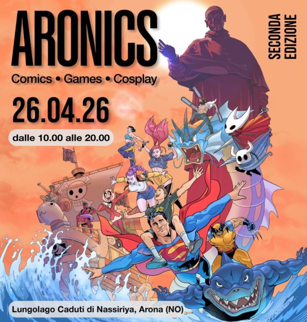 Arona si prepara ad accogliere la seconda edizione di “Aronics”, l’evento dedicato al mondo dei fumetti, dei videogiochi e del cosplay, in programma domenica 26 aprile 2026. Per un’intera giornata la città si trasformerà in un punto di riferimento per appassionati e curiosi, con un ricco programma di attività distribuite tra diverse location. Cuore della manifestazione sarà l’Artist Alley allestita presso il Salone Arc En Ciel dell’Hotel Atlantic, dove i visitatori potranno trovare stand di fumetti e illustrazioni, partecipare a panel e conferenze, assistere alla presentazione di autori e disegnatori e scoprire le novità editoriali tra libri e graphic novel. Non mancheranno anche workshop dedicati a chi vuole avvicinarsi al mondo del disegno e della creatività. Sul Lungolago Caduti di Nassiriya, invece, spazio al divertimento all’aria aperta con giochi da tavolo e di ruolo, stand di gadget, street food e l’attesissima gara cosplay, uno dei momenti più coinvolgenti dell’evento.